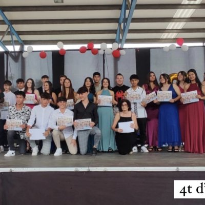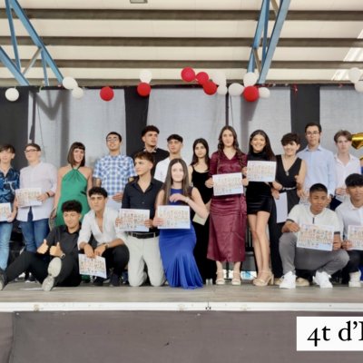 Després va ser el moment de reconèixer l'excel·lència acadèmica i de felicitar els alumnes de 4t d'ESO amb el millor expedient. El director va lliurar els diplomes acreditatius del guardó a Tomás Aceña, Silvia Alessandria, Eva Andreu, Jana Besora, Isabel María Busquets, Blanca López, María Luisa Lorente, Paula Martínez, Abril Milán, Adrián Montañez, Alba Pérez, Alexandra Pérez, Aina Rallo, Carla Rallo, Júlia Santó i Oksana Zagayko. Enhorabona, nois i noies!