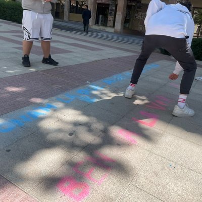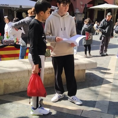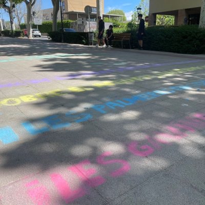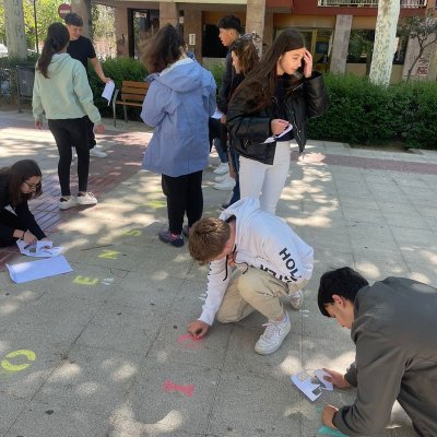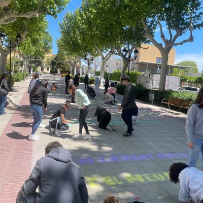 3r ESO: després del pati, els grups de 3r van fer una activitat cultural i literària al passeig de l’Estació de Valls, on van pintar a terra versos dels poetes dels quals enguany commemorem l’Any, Vicent Andrés Estellés i Joan Salvat-Papasseit.