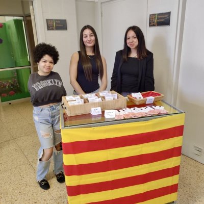 L’alumnat de 2n d'Activitats comercials ha posat una paradeta de venda a l’institut durant la diada de Sant Jordi. Han venut uns detalls amb el símbol de la rosa, confeccionats en col·laboració amb els companys del cicle d'especialització en Fabricació additiva, que han agradat moltíssim, i a l’hora del pati ja ho tenien pràcticament tot venut.