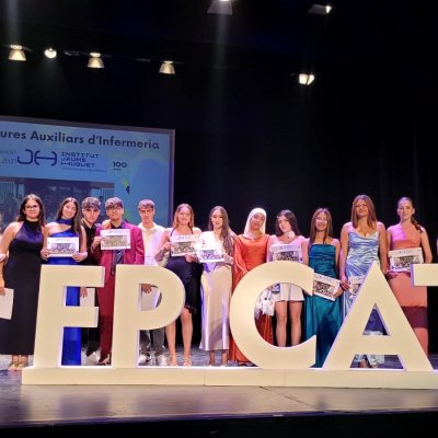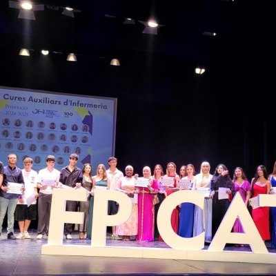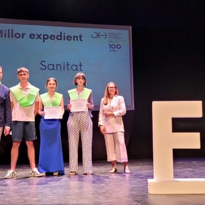 -Família Professional de Sanitat: OM JOVÉ CULLERÉ i NEUS ROSET PRATS del CFGM de Cures Auxiliars d’Infermeria (matí) i ANNA ESTEVEZ SANCHEZ i CRISTINA INFANTES OLLÉ (tarda)