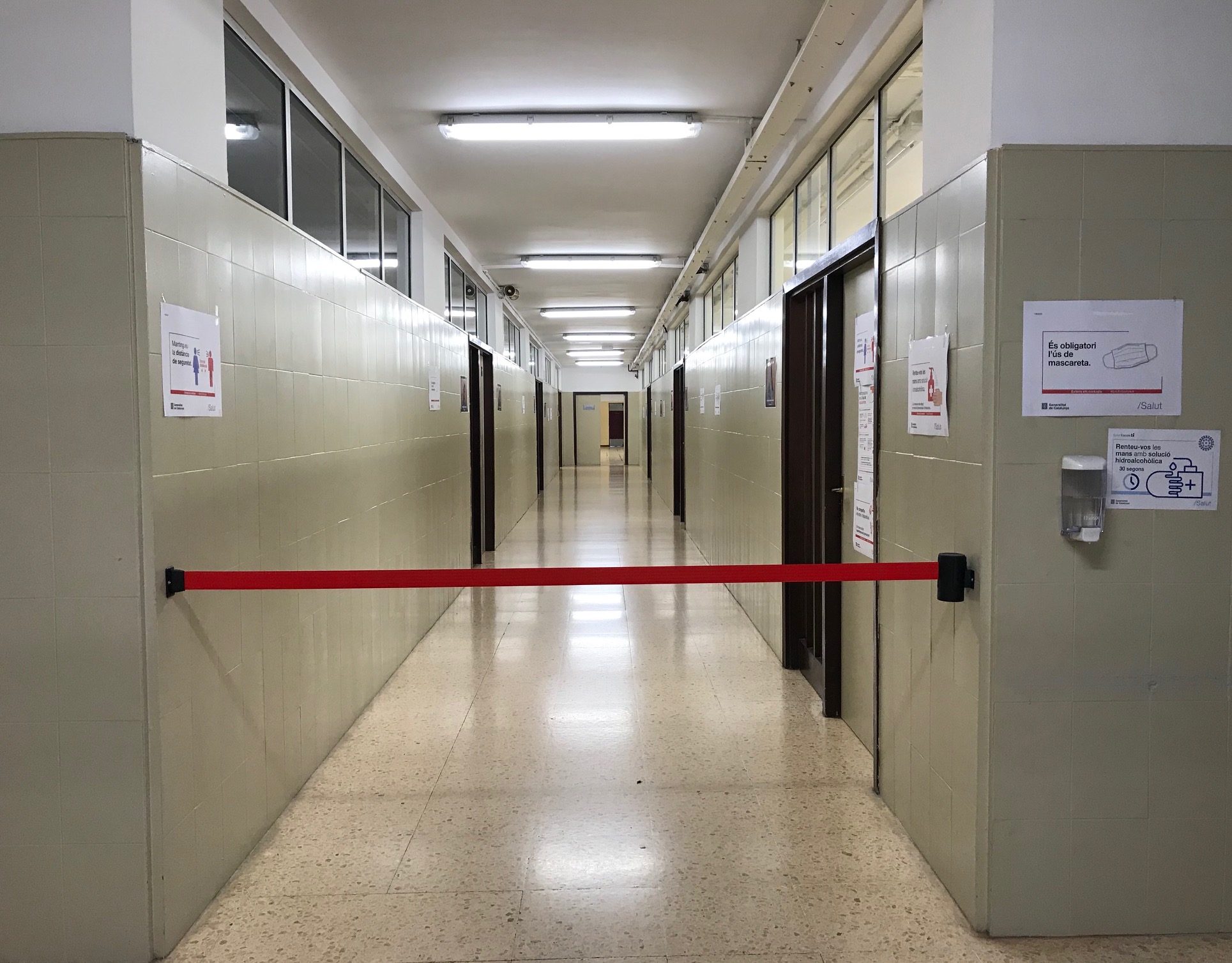 Tal com marquen els protocols, s’han adequat tots els espais del centre amb el que determina la normativa: líquids necessaris per desinfectar, rètols recordant les instruccions bàsiques (mans-distància-mascareta), accessos diversificats, etc.