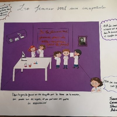 Les élèves de la 1ère année de Baccalauréat vont travailler la vision féminine du monde moyennant une bande dessinée (B.D.). Les lycéens vont créer une infographie d’une femme importante dans l’histoire de France en format vignette.