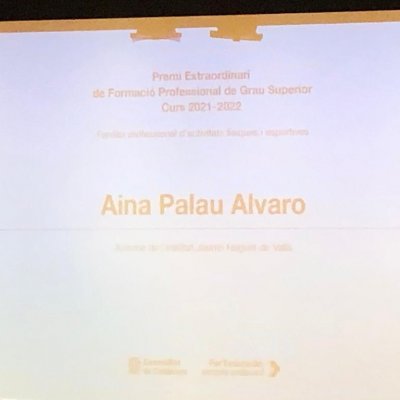 La nostra alumna del CFGS d’Ensenyament i Animació socioesportiva Aina Palau Alvaro, que va obtenir una qualificació de 9,65, va recollir el premi corresponent a la família professional d'Activitats físiques i esportives.
