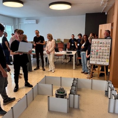 Els alumnes Joan Pol Magrané i Jaume Oller de 2n curs d’automàtica i robòtica industrial han estat els participants del nostre centre, amb el professor Raül Vidal com a tutor. Han aconseguit classificar-se en segona posició, després d’una competició molt disputada, i amb reptes que cada any es presenten més complicats.