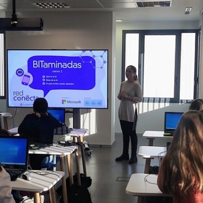 Aquest taller consta de dues sessions que es fan en dissabte i està pensat exclusivament per a noies, per impulsar el talent femení en el sector informàtic. Del nostre centre hi han participat dues alumnes del CFGM Sistemes Microinformàtics i Xarxes de 2n curs, l’Ainhoa Morgado, i de 1r de CFGS d’ASIX, Nour El Houda Aissiou, que han sigut acompanyades per la tutora del CFGS ASIX/DAM Neus Budesca, com a membre que també és de dones COEINF.