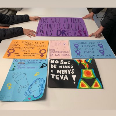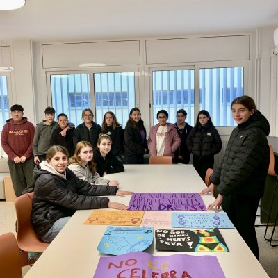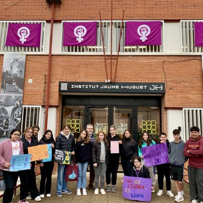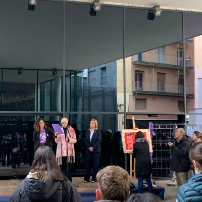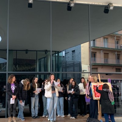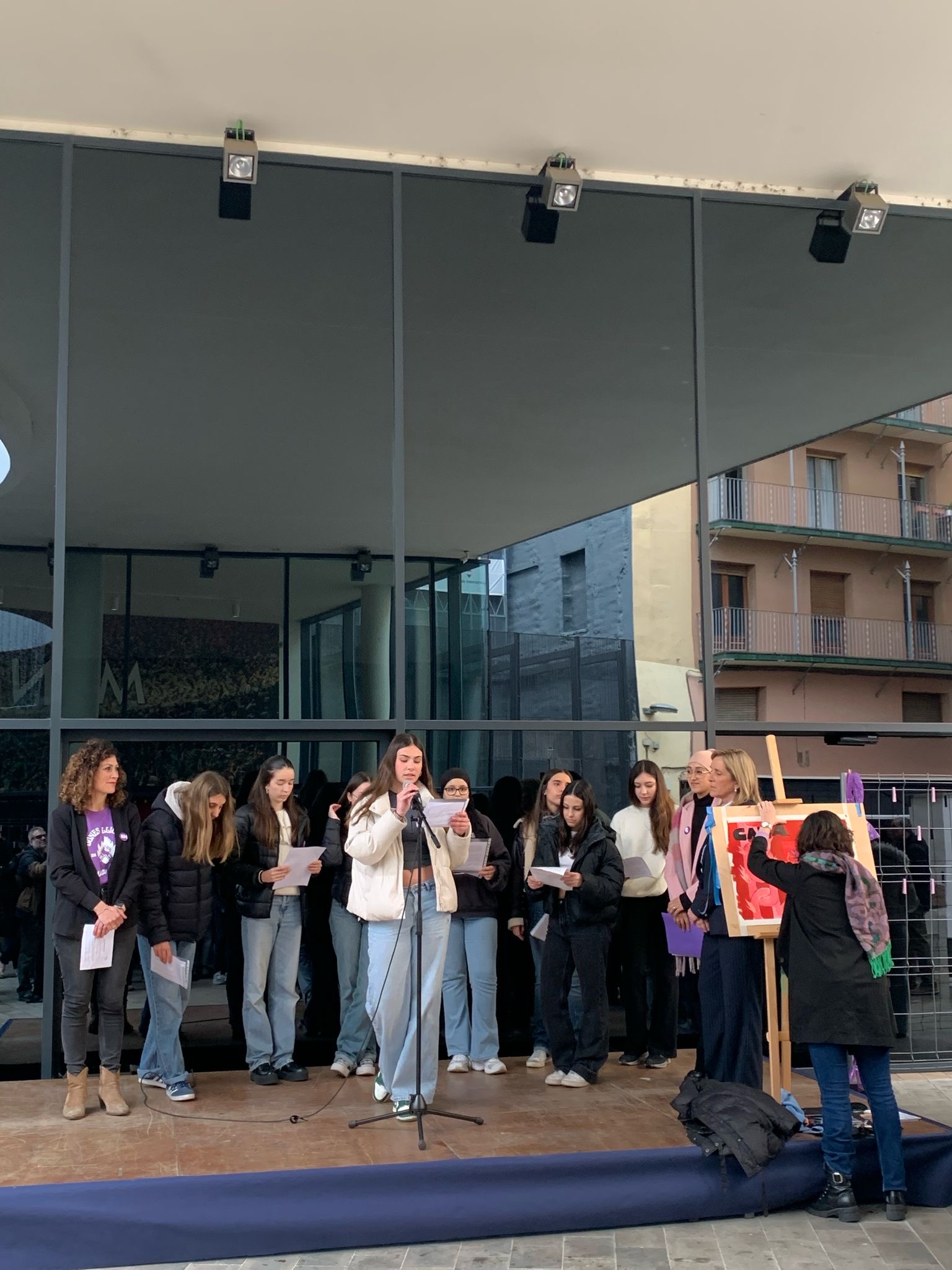 Avui la comissió lila de l’Institut ha assistit a l'acte commemoratiu del 8M, Dia Internacional de la Dona Treballadora, que ha organitzat l'Ajuntament de Valls davant del Museu Casteller.