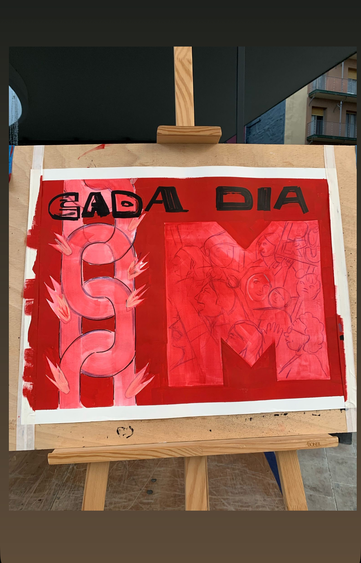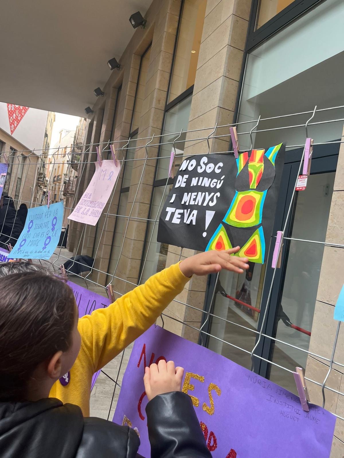 Durant l'acte s'ha fet la lectura del manifest a càrrec d'alumnes dels centres de secundària de Valls, s'ha escoltat el testimoni de la convidada especial, Yasmina Akrouh, una jove emprenedora propietària de la Peixateria l’Àncora, s'han penjat posters reivindicatius i, en directe, la il·lustradora Alba Pocurull Oliva ha pintat una pancarta reivindicativa.