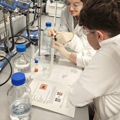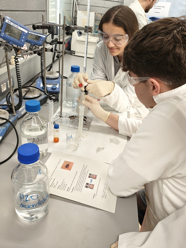 El 27 de març, els alumnes de la matèria de química de primer de batxillerat van assistir al taller de farmaciola a l’Institut Català d’Investigació Química (ICIQ) al Campus Sescelades, on van fer diferents pràctiques de reaccions químiques, moltes d’elles valoracions, emprant substàncies que podem trobar en una farmaciola bàsica. Així, van utilitzar dissolucions de iode per a cicatritzar ferides i en van determinar la concentració, van fer desaparèixer missatges que havien escrit en un paper amb una dissolució de Vitamina C, van determinar la concentració d’una dissolució d’amoníac per a les picades, van comprovar el poder superabsorbent dels bolquers i van simular un geni amb un fum blanquinós utilitzant aigua oxigenada. A més a més, van treballar de forma col·laborativa aconseguint, entre tots, resultats amb força fiabilitat. Finalment, van gaudir d’una breu visita a la resta de les instal·lacions de l’ICIQ on també van poder veure el laboratori computacional.