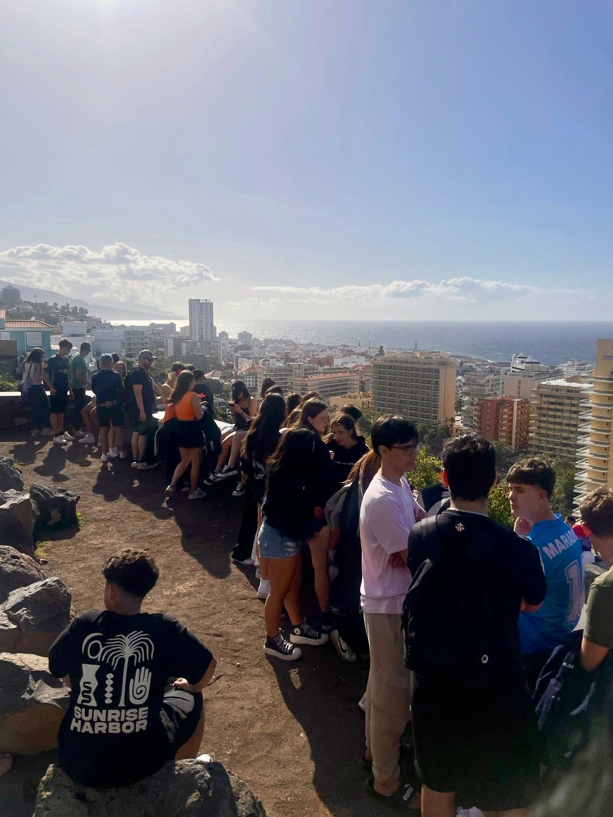 31 de març: El dia va començar molt aviat per a tots ells i les seves famílies, ja que van matinar per marxar de l’Institut a les 3 de la matinada. A les 9:45, hora de Canàries, van aterrar a Tenerife. Després de deixar les maletes a l’hotel, ja a la tarda, van visitar el Jardí Botànic i el Mirador de la Paz, a Puerto de la Cruz.