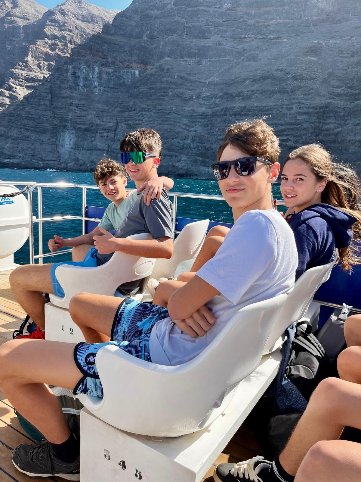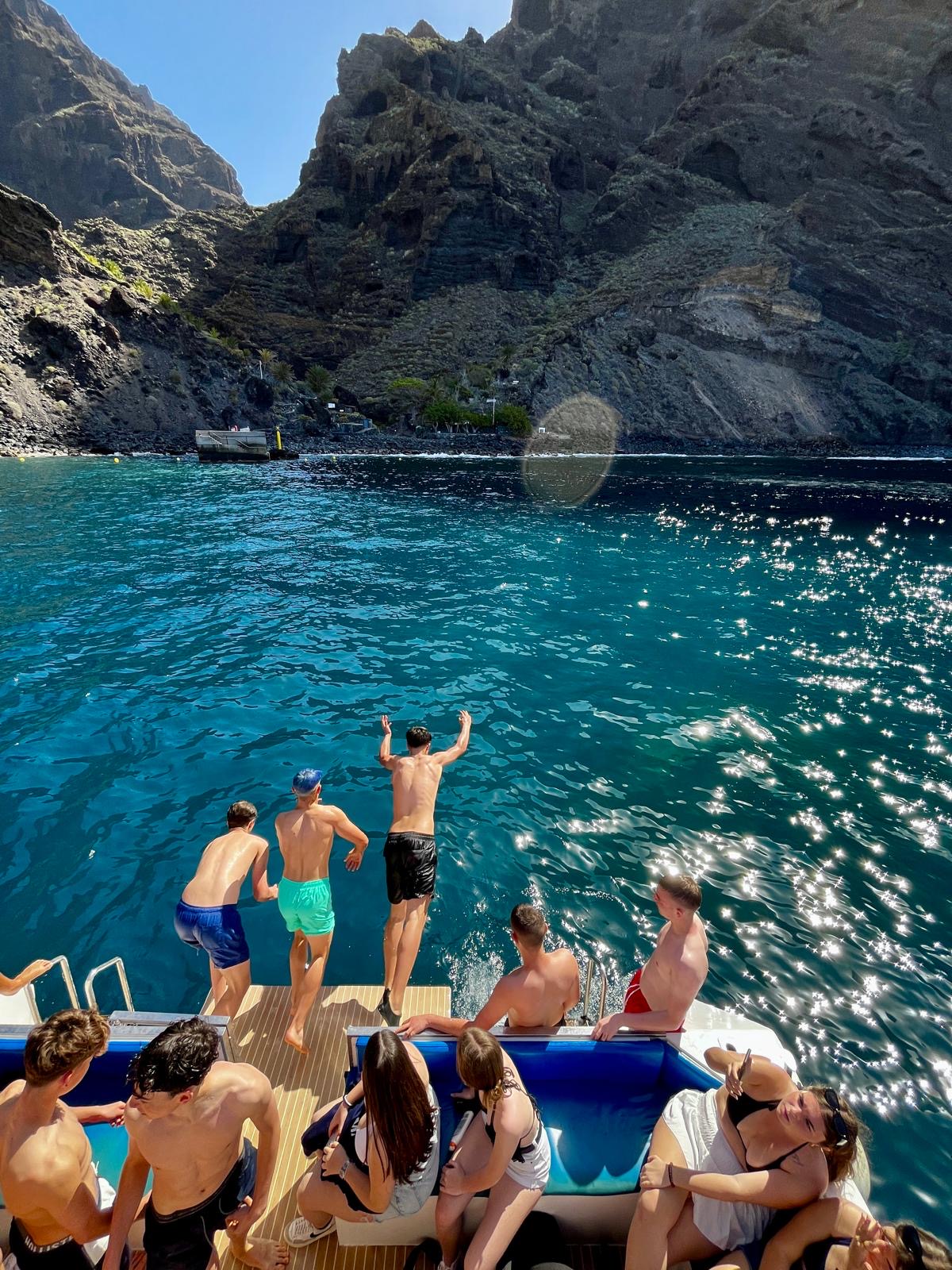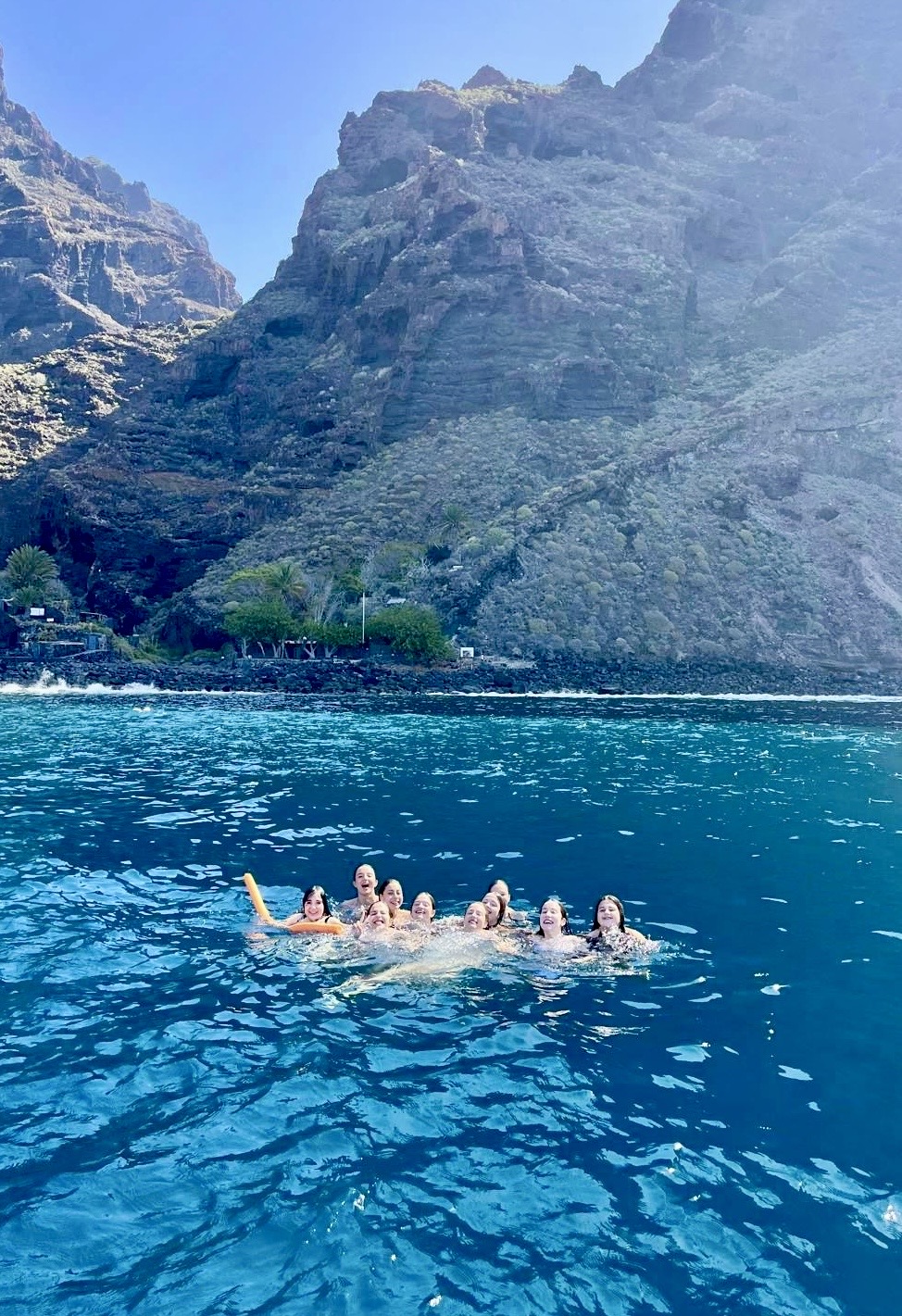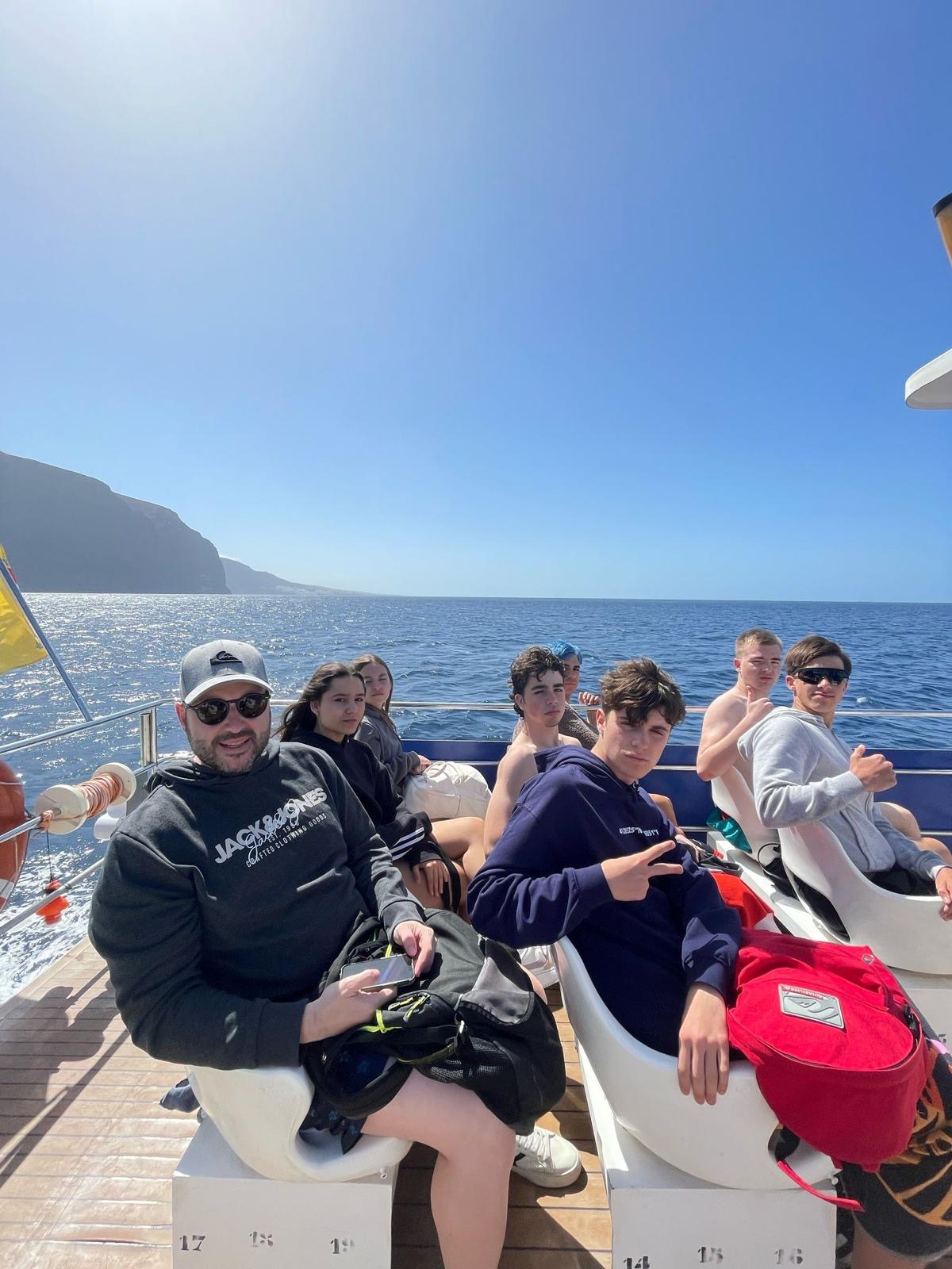 1 abril: El segon dia del viatge va ser molt intens. Al matí van fer un passeig en barca pels penya-segats de Los Gigantes, al sud de l’illa, i es van poder banyar a l’Atlàntic. Encabat, després de dinar, van recórrer el passeig marítim de Puerto de la Cruz i es van banyar a l’emblemàtica platja de San Telmo.