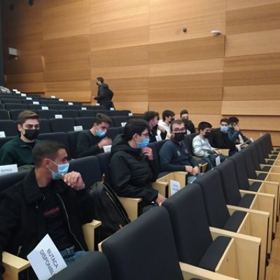 Els alumnes de 1r del CFGS Desenvolupament d'Aplicacions Multiplataforma (DAM) interessats a fer la Formació en Centres de Treball (FCT) en modalitat dual, van assistir l’1 de desembre al Clúster TIC que es feia a Reus. Hi van anar acompanyats per Neus Budesca, la tutora d’FCT dual d’ASIX i DAM.