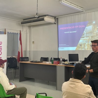 Durant el segon trimestre, s'estan fent les presentacions de les empreses que ofereixen les seves instal·lacions per a fer-hi les pràctiques curriculars en FP dual. El 20 de febrer va ser el torn d'Essity, que va realitzar la seva presentació a través dels nostres alumnes que en aquest moment estan cursant FP Dual a les seves instal.lacions.