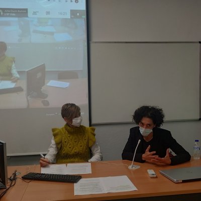 A la tarda fou el torn dels professionals que han viscut la pandèmia en primera línia: Mireia Flavià Solé, directora de la residència Santa Teresa; Natàlia Rovira Gonzàlez, directora de la residència Alt Camp; Judit Garcia Balta, coordinadora del centre de dia de Blancafort; Anna Fabregat Tejero, treballadora del centre de dia de Blancafort; Noèlia Pérez Sánchez, treballadora de la residència Conca de Barberà; Anna Linares Barrera, treballadora del Pius Hospital; Antonia Fonseca Soto, treballadora de la residència Conca de Barberà, i Montse Alujas, treballadora de la residència Alt Camp. Totes aquestes directores i treballadores de residències d'avis (algunes, exalumnes del nostre centre) van parlar de la situació que es viu a les residències de gent gran, un dels àmbits on la pandèmia ha colpejat més durament. La taula rodona va ser moderada per la professora Teresa Albaiges Escoté.