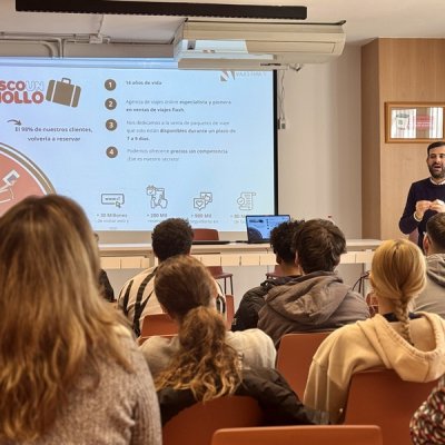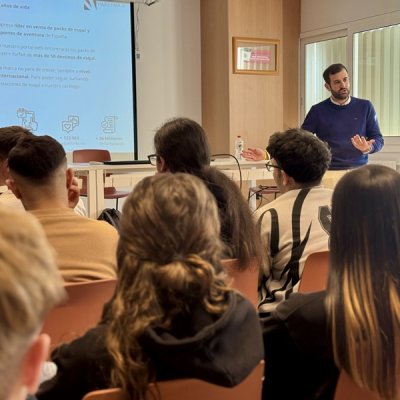 A més, a l’Institut, Adrià Agramunt, cap de RRHH de l'empresa Viajes para ti va fer una xerrada a l'alumnat del cicle formatiu d'Activitats comercials. Els explicà totes les marques amb què l'empresa comercialitza els seus productes (Buscounchollo_com, Esquiades_com, Amimir__, Jump2spain_com); els parlà dels punts forts que té aquesta agència de viatges en línia enfront de la seva competència; els explicà els orígens i la trajectòria de l'empresa i, per acabar, els parlà dels valors de l'empresa per a la cerca de professionals i de les funcions i habilitats del personal del departament de producte, un dels departaments en què els nostres estudiants podrien arribar a treballar.