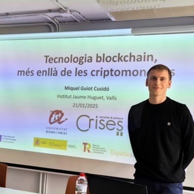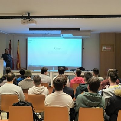 També per a tots els cicles d’informàtica es va fer una altra xerrada. Miquel Guiot, doctorant de seguretat d’ETSE URV, els va parlar de “Blockchain: més enllà de les criptomonedes” i durant la seva intervenció els explicà en profunditat temes com ara P2P, criptografia, funcions hash, etc.