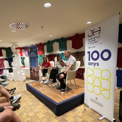 Els exalumnes Joan Ibarra Rodríguez (Batxillerat), expresident de la Colla Vella dels Xiquets de Valls, i Helena Llagostera Serra (Formació professional), excap de la Colla Joves Xiquets de Valls, han conversat amb la periodista Aina Mallol Capellà sobre els valors dels castells en el món educatiu.