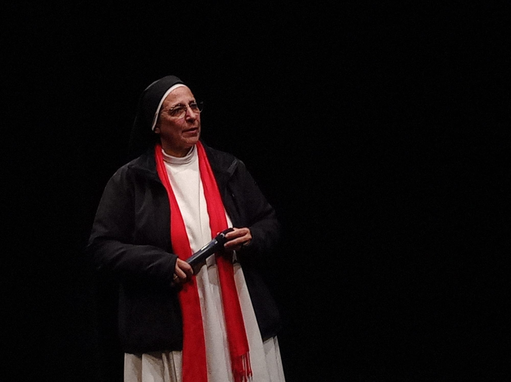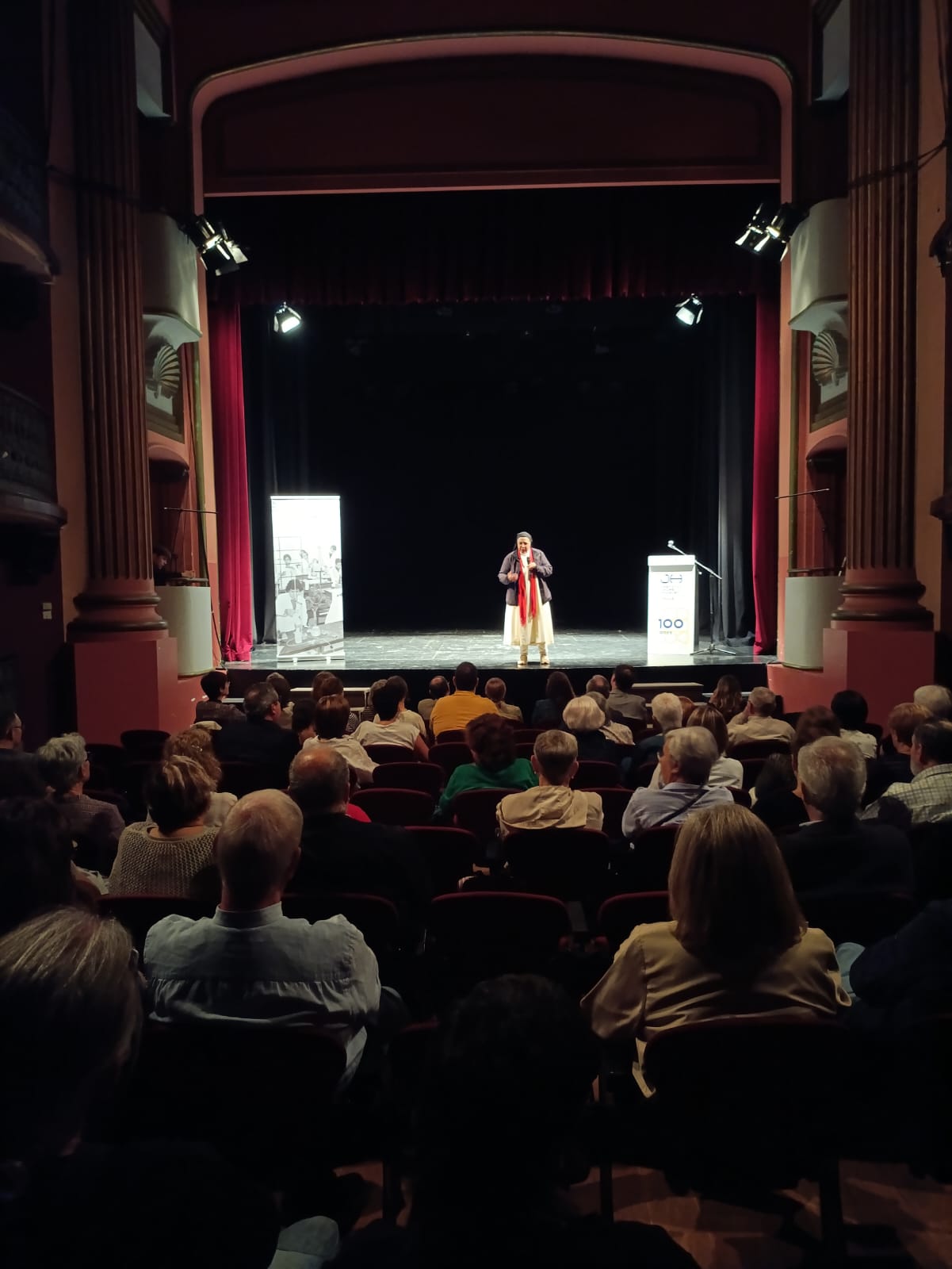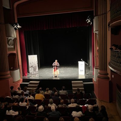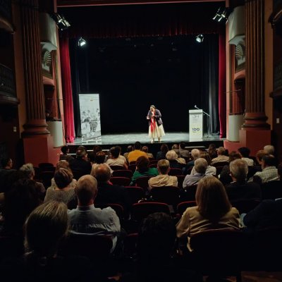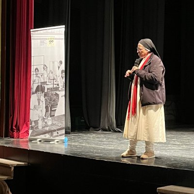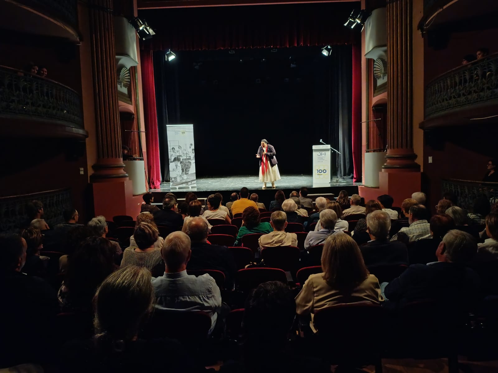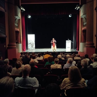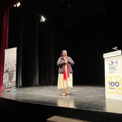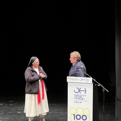 A les 7 de la tarda, al Teatre Principal, i en el marc dels actes del Centenari, sor Lucía va fer una altra xerrada, aquest cop oberta al públic en general. També va ser presentada pel professor del centre Salva Torres.