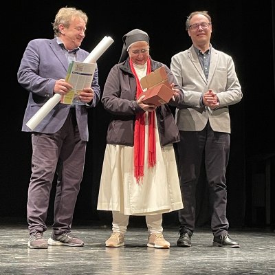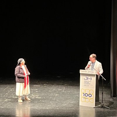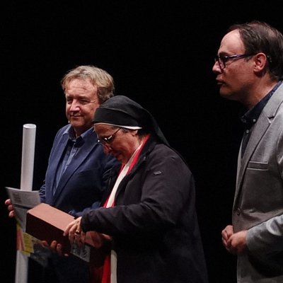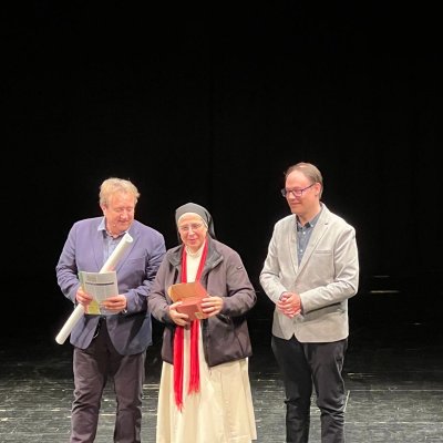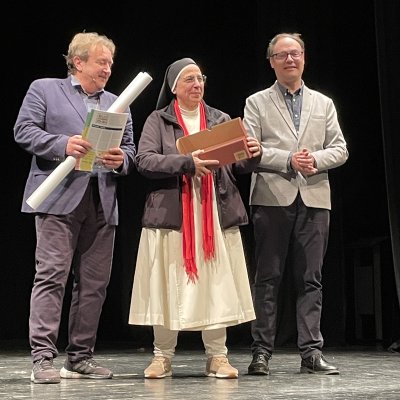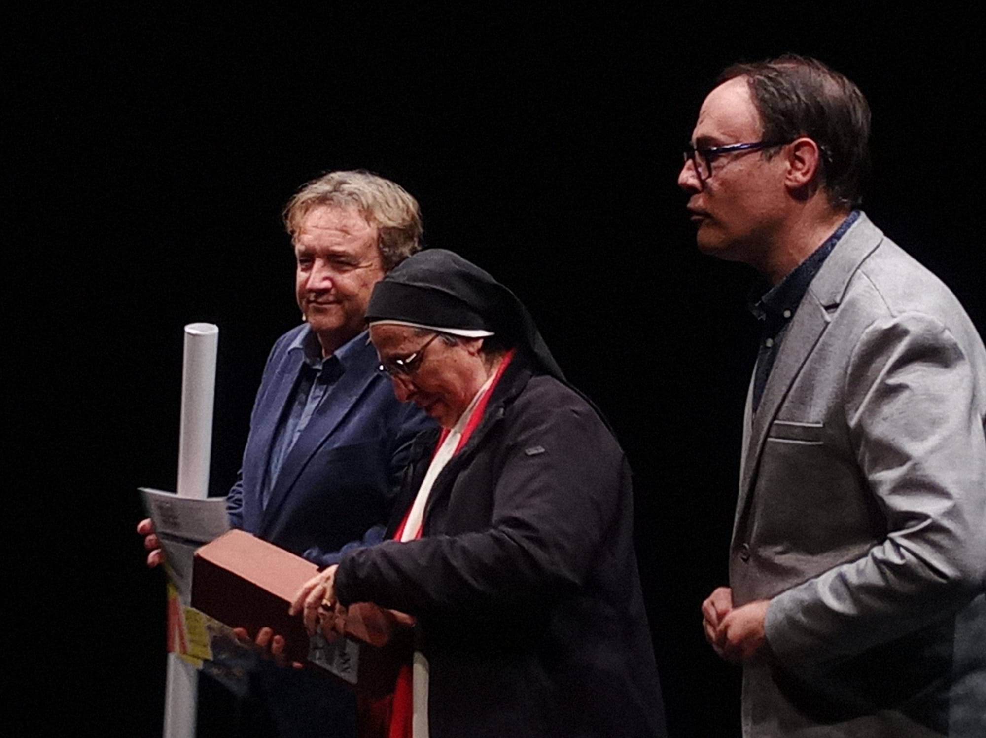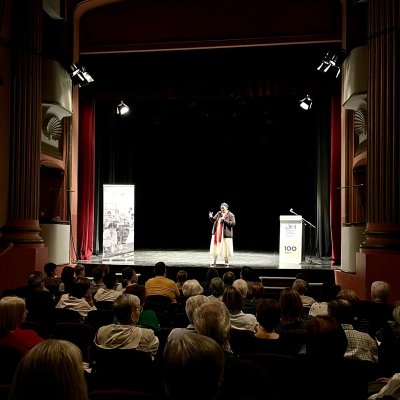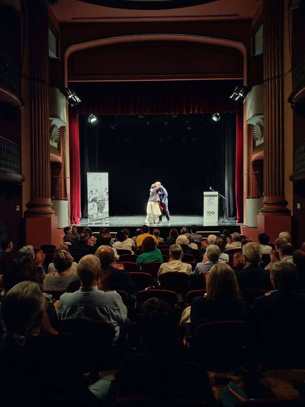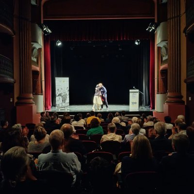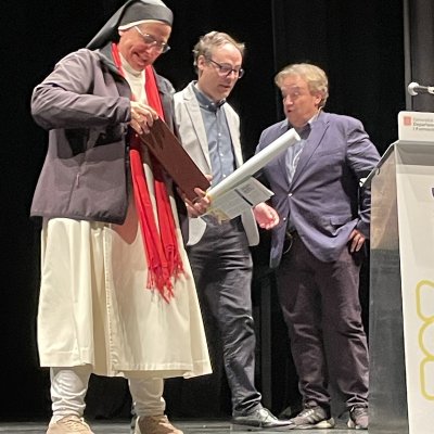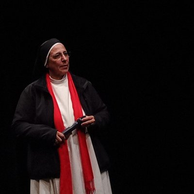 A les 7 de la tarda, al Teatre Principal, i en el marc dels actes del Centenari, sor Lucía va fer una altra xerrada, aquest cop oberta al públic en general. També va ser presentada pel professor del centre Salva Torres.