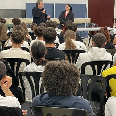 El dia 17 d'octubre, coincidint amb el Dia Mundial de la Pobresa, va venir a l’Institut la monja i activista sor Lucía Caram. Va ser presentada pel professor Salva Torres, vicepresident de la Confederació de penyes del Barça; és precisament el Barça el que els va unir, ja que ella ha col·laborat amb la Fundació social d’aquest club. Va parlar als alumnes del seu compromís social amb la gent més vulnerable, especialment amb la pobresa invisible i, ara també, el seu compromís amb la gent amb problemes per culpa de la guerra d’Ucraïna.