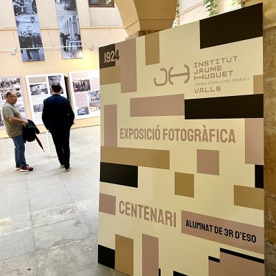 El 25 d’octubre vam inaugurar, al Pati de Sant Roc de l’Institut d’Estudis Vallencs, l’exposició del recull fotogràfic del Centenari a partir del projecte de tercer d’ESO. Amb aquest recull fotogràfic el nostre alumnat ha volgut copsar les fites històriques que durant aquests 100 anys han estat més rellevants per a l’Institut Jaume Huguet·Antiga Escola del Treball.