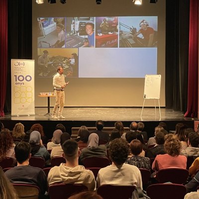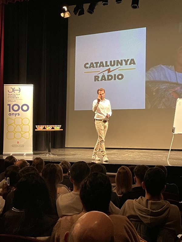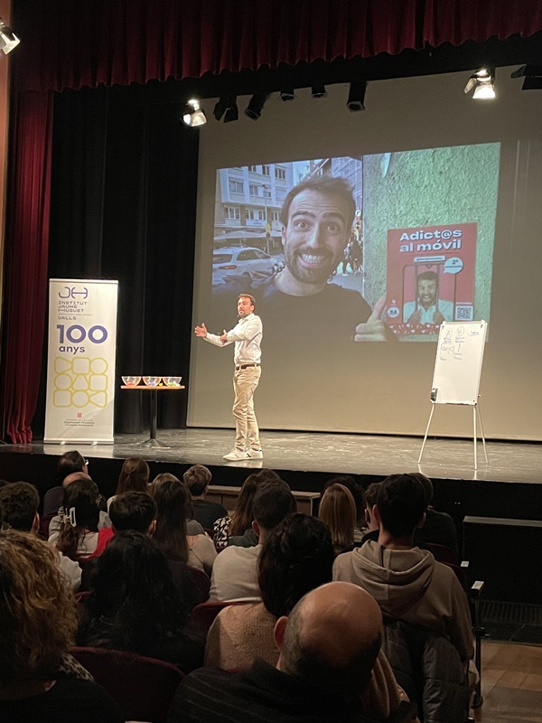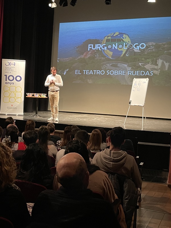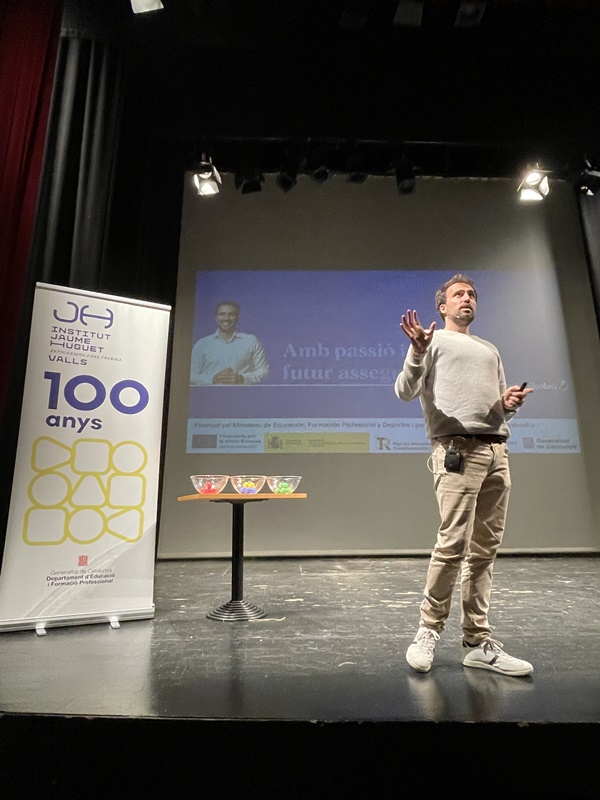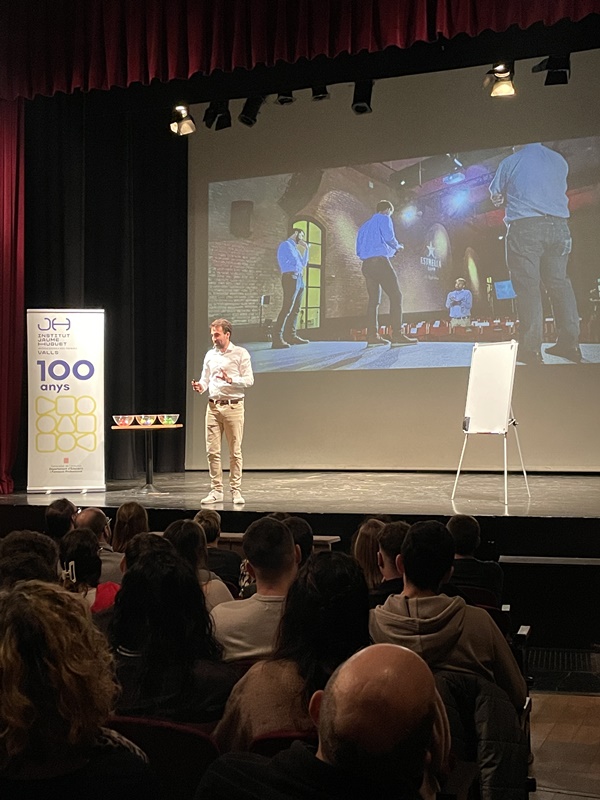 Amb una platea del Teatre plena d’alumnes de diversos CFGS, especialment els d’Administració i Finances i els de Transports i Logística, Nicolau va transmetre d’una manera divertida i participativa quins són els punts que cal tenir en compte que introduir-se en el món laboral.