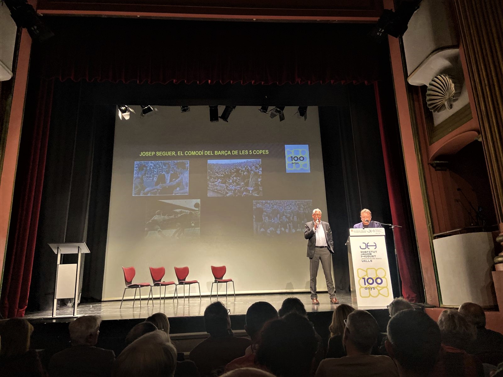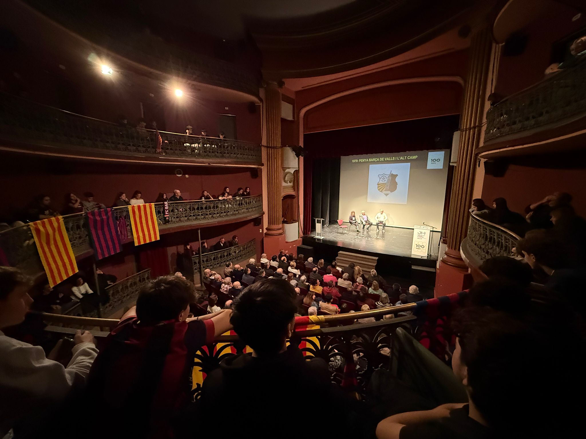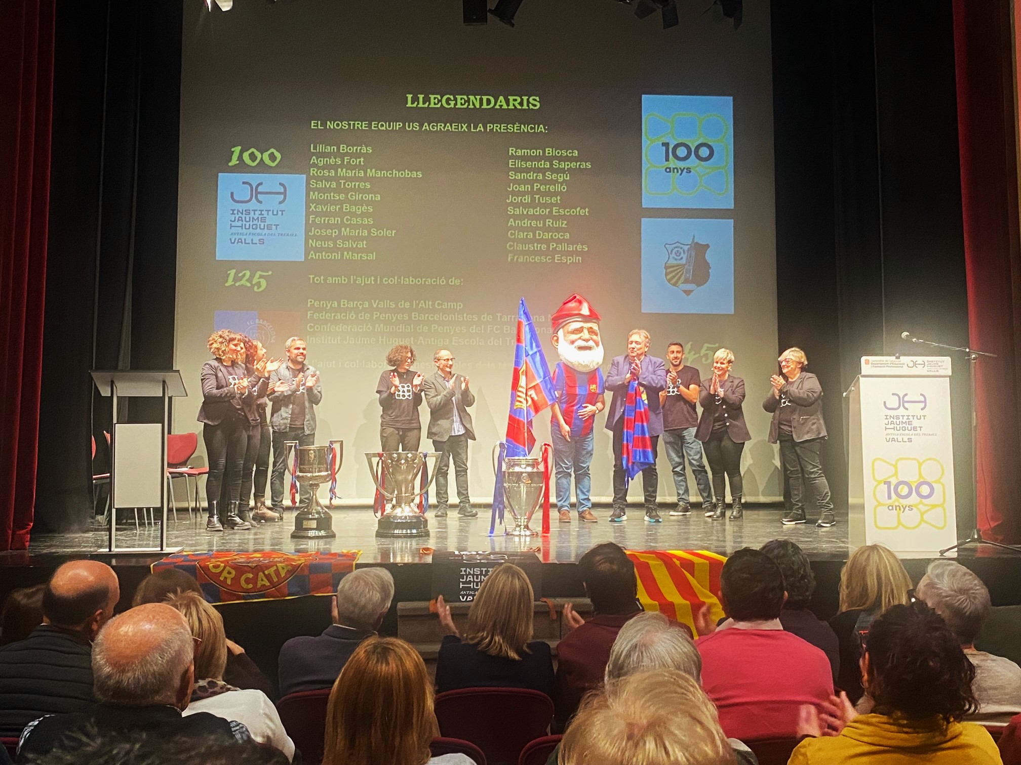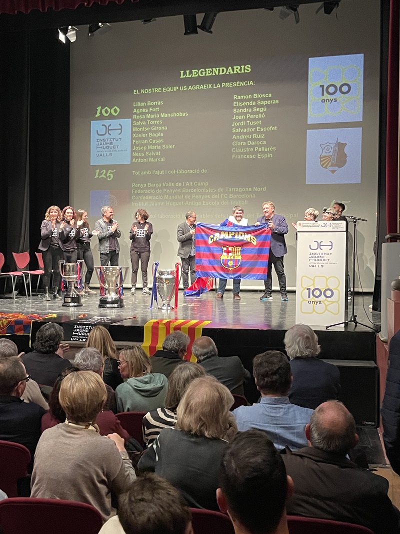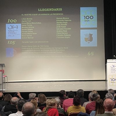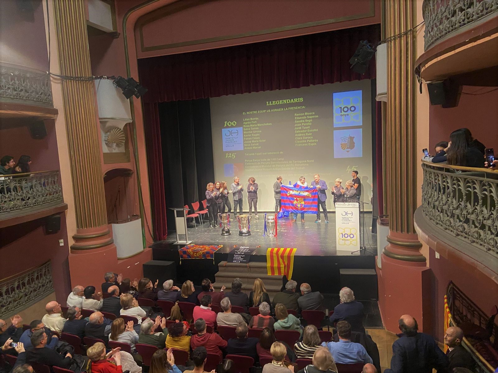 “Llegendaris”: així és com vam titular la gran gala que vam viure el 13 de desembre a la nit al Teatre Principal de Valls. Va ser una nit per recordar els 125 anys del FC Barcelona, els 100 de l’Institut Jaume Huguet•Antiga Escola del Treball i els 45 de la Penya Barça de Valls i l’Alt Camp. En un Teatre Principal ple de gom a gom, hi va estar present l’alcaldessa Dolors Farré, diversos regidors de l’Ajuntament de Valls i membres de diverses penyes barcelonistes de les nostres comarques.