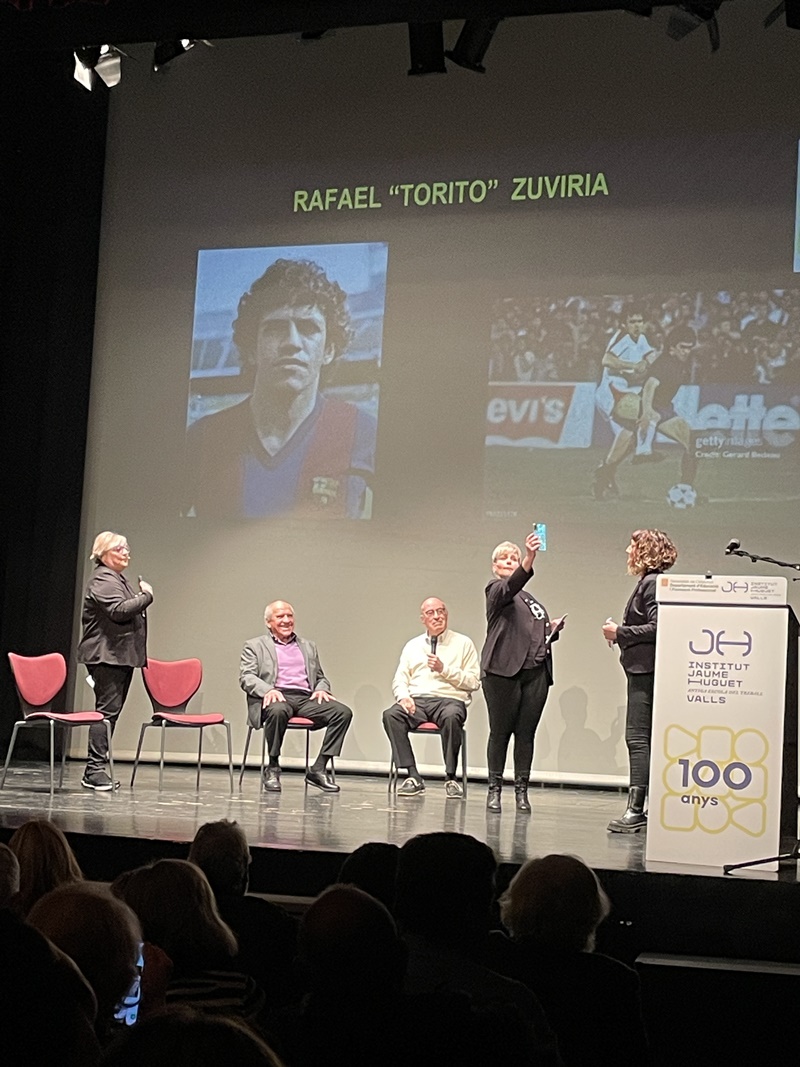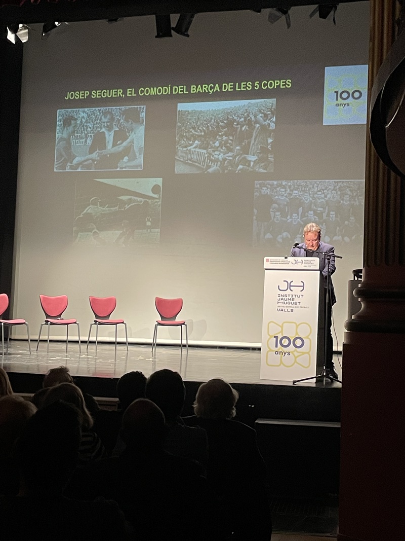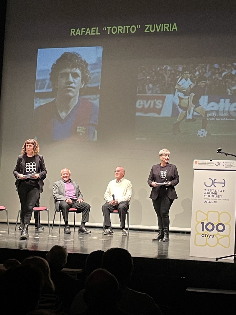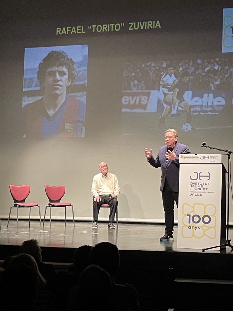 Entremig d’aquest repàs de les diverses etapes de les dues institucions es van anar intercalant les intervencions del jugador aleví del FC Barcelona, el vallenc Roger Moreno; Andreu Ruiz, exprofessor del nostre centre i autor de l’escut de la Penya Barça de Valls; l'expolític Josep Maldonado, que va estar present, amb el president Pujol, en la inauguració del nou edifici de l’Institut i, finalment, el periodista Frederic Porta, que és autor, juntament amb Salva Torres, de diversos llibres d’història del Barça.