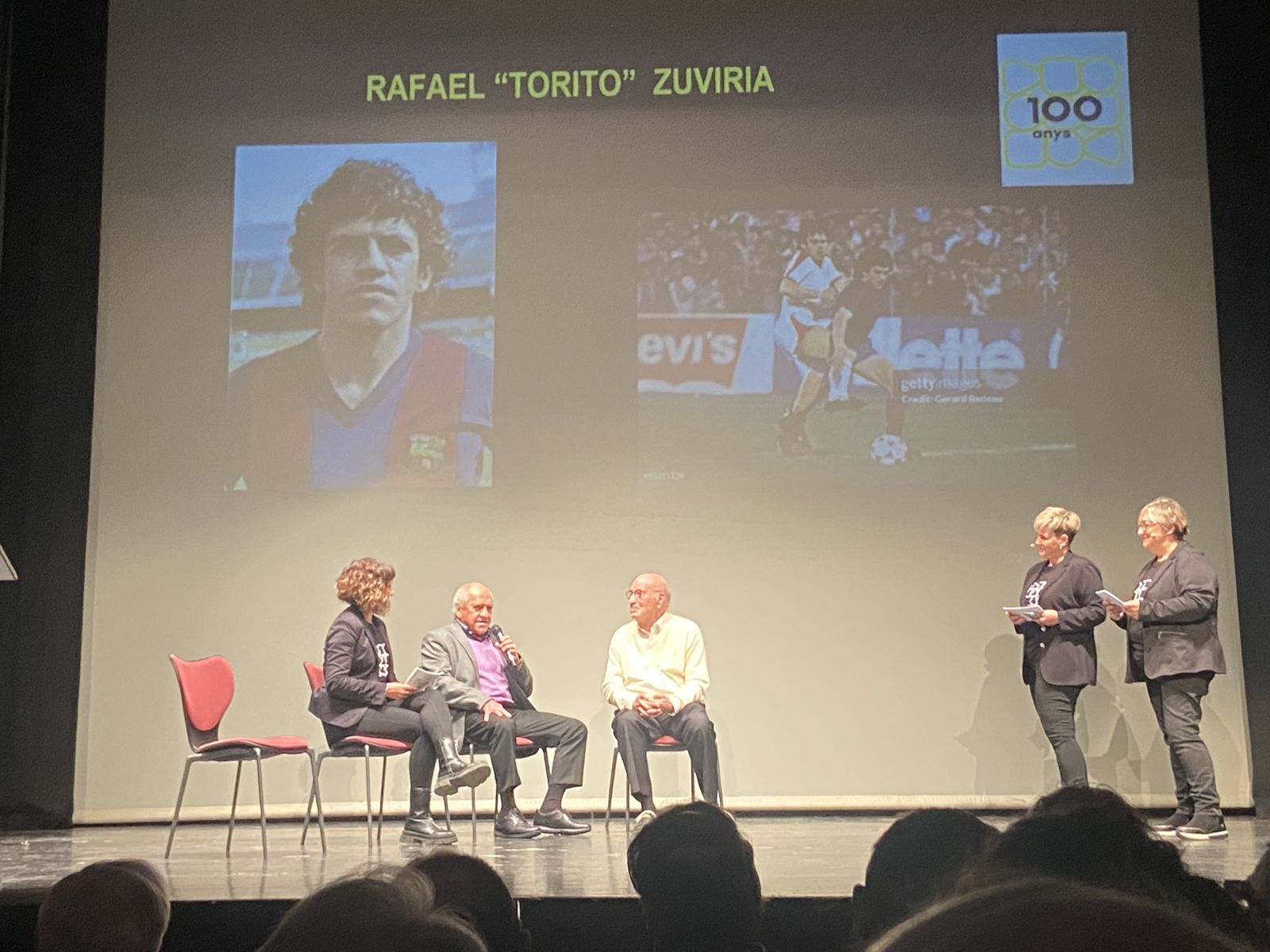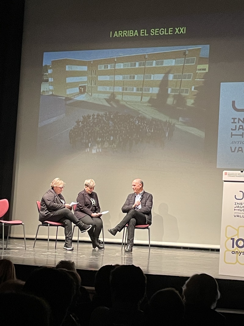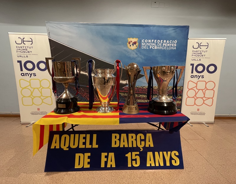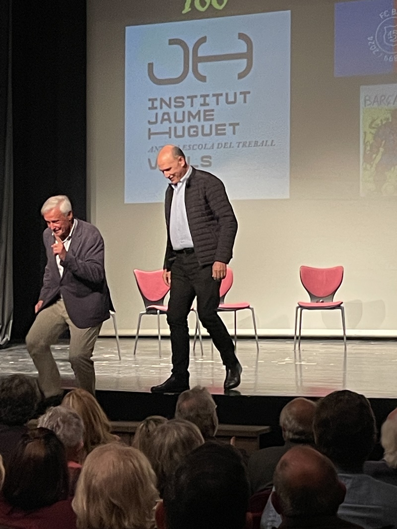 Entremig d’aquest repàs de les diverses etapes de les dues institucions es van anar intercalant les intervencions del jugador aleví del FC Barcelona, el vallenc Roger Moreno; Andreu Ruiz, exprofessor del nostre centre i autor de l’escut de la Penya Barça de Valls; l'expolític Josep Maldonado, que va estar present, amb el president Pujol, en la inauguració del nou edifici de l’Institut i, finalment, el periodista Frederic Porta, que és autor, juntament amb Salva Torres, de diversos llibres d’història del Barça.