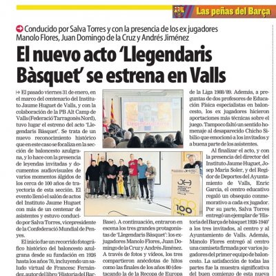 Al final de l’acte, els exjugadors van lliurar al centre una samarreta firmada per jugadors del primer equip, i Salva Torres va donar als tres convidats, al centre i al regidor d’esports de l’Ajuntament de Valls, un exemplar del llibre Història del Barça de bàsquet 1926-1940.
