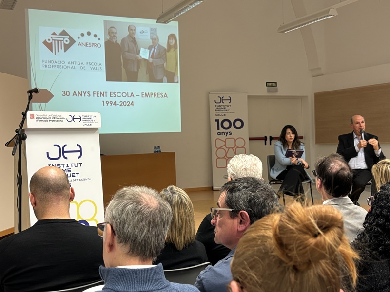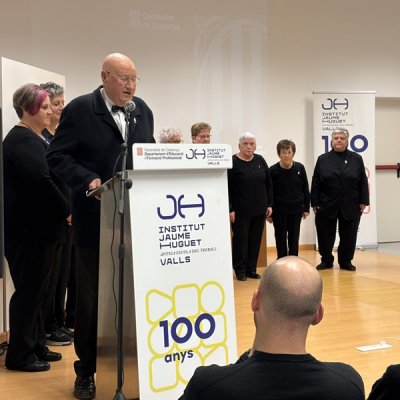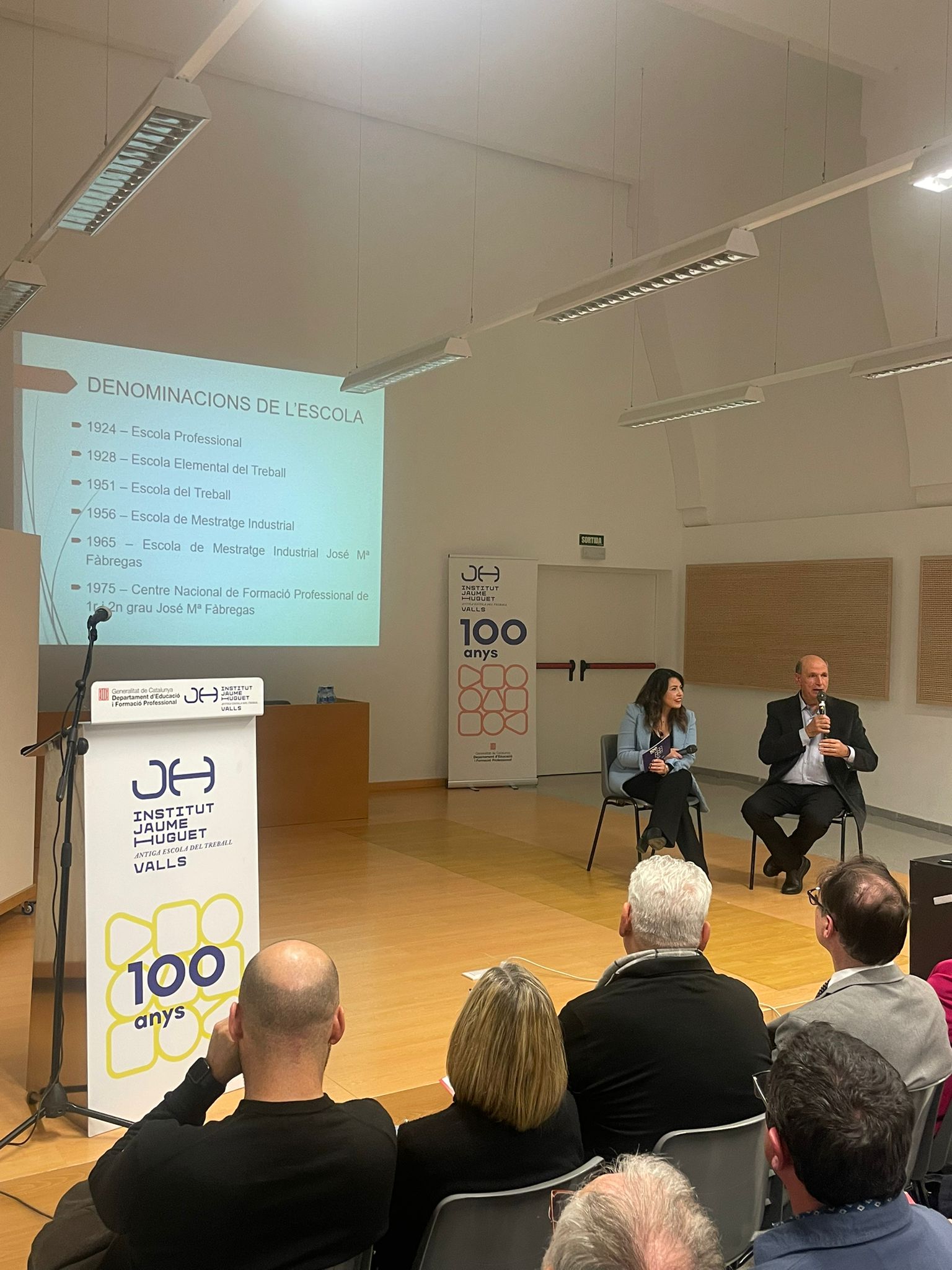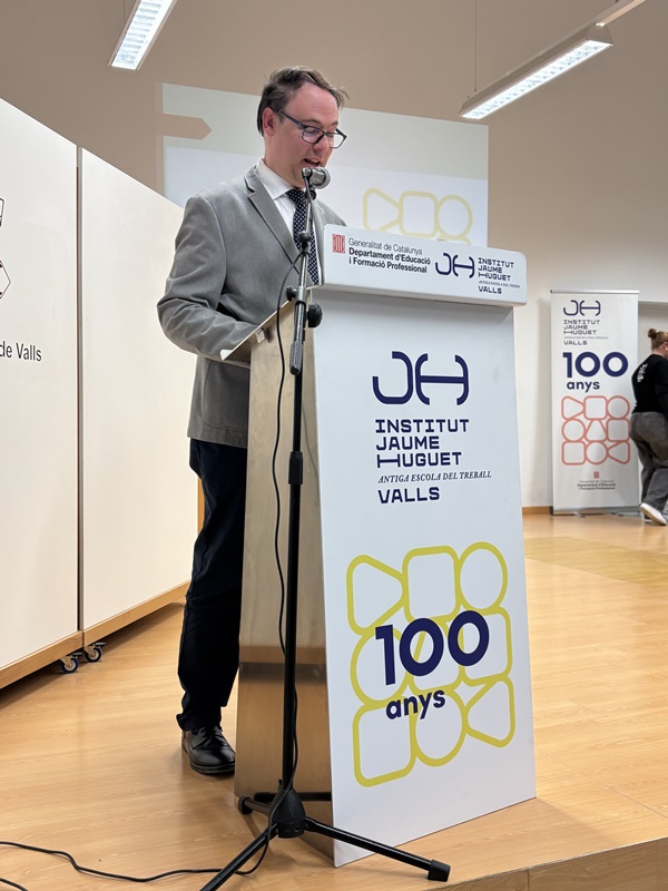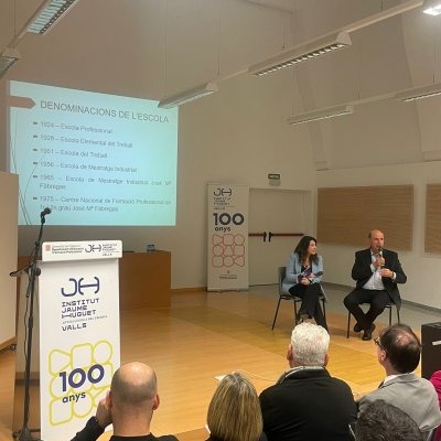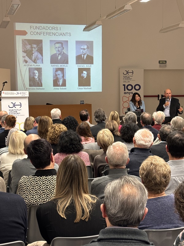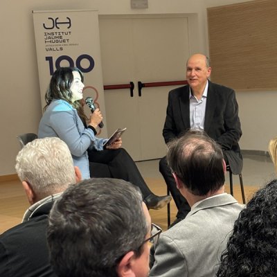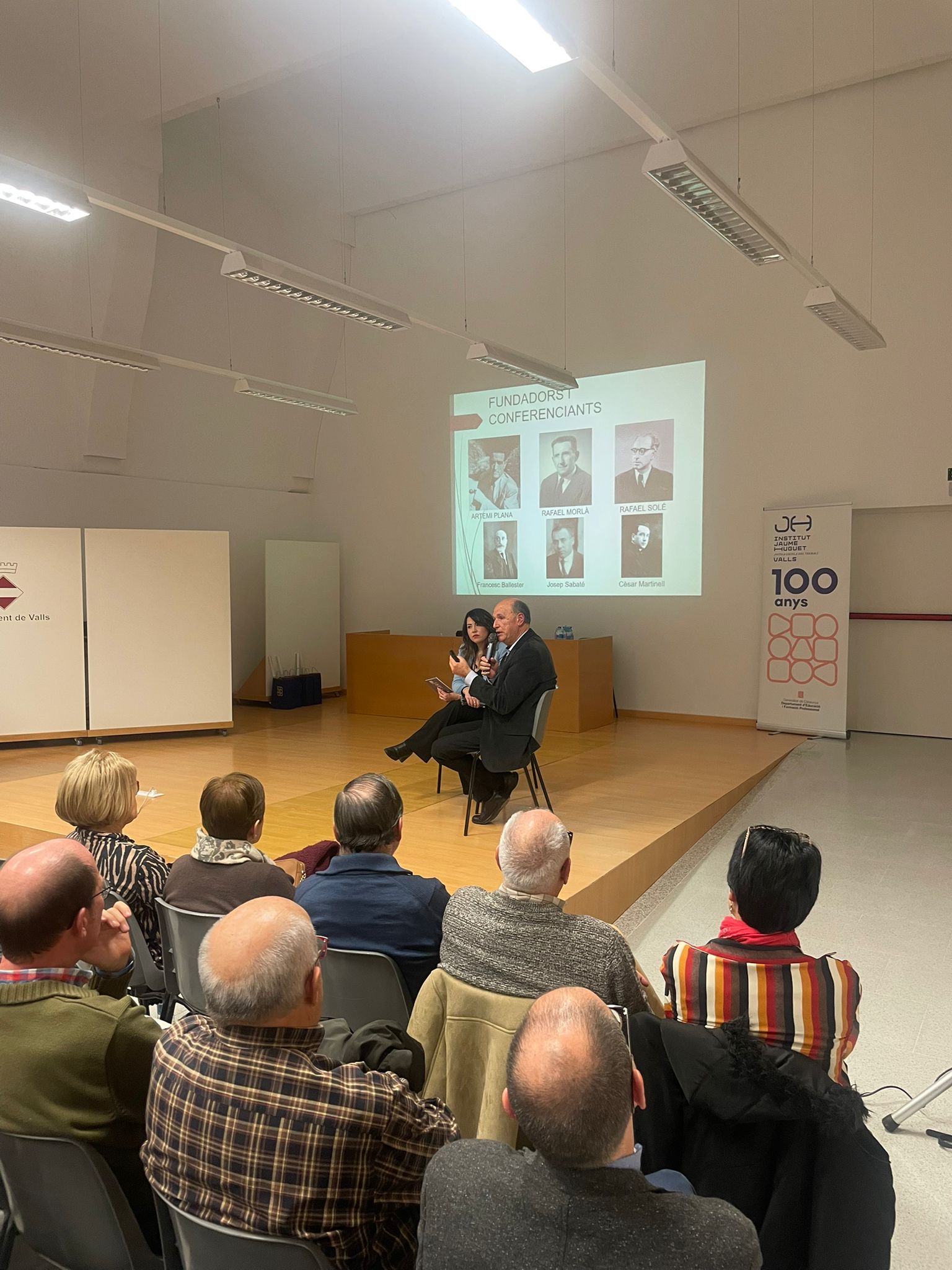 Tot seguit, en forma d’entrevista i d’una manera molt distesa, Marta Ferré i Jordi Tuset van fer la presentació del llibre, el qual, en paraules de l'autor, “vol ser un testimoni de cent anys de trajectòria d’una de les institucions educatives més importants de Valls, de la nostra comarca i de les comarques veïnes. Des d’aquella Escola Professional de l’any 1924, fins a l’actual Institut Jaume Huguet sempre trobem aquell batec de vida educativa, social i cultural que emana gràcies al seu esforç, a la seva iniciativa i a la seva capacitat d’innovació.”