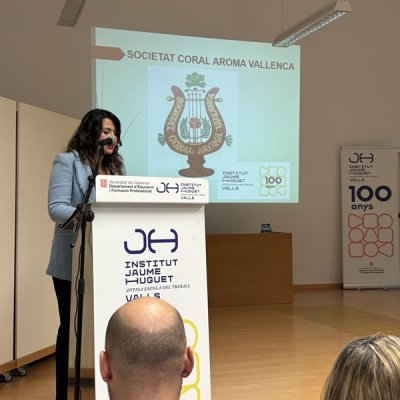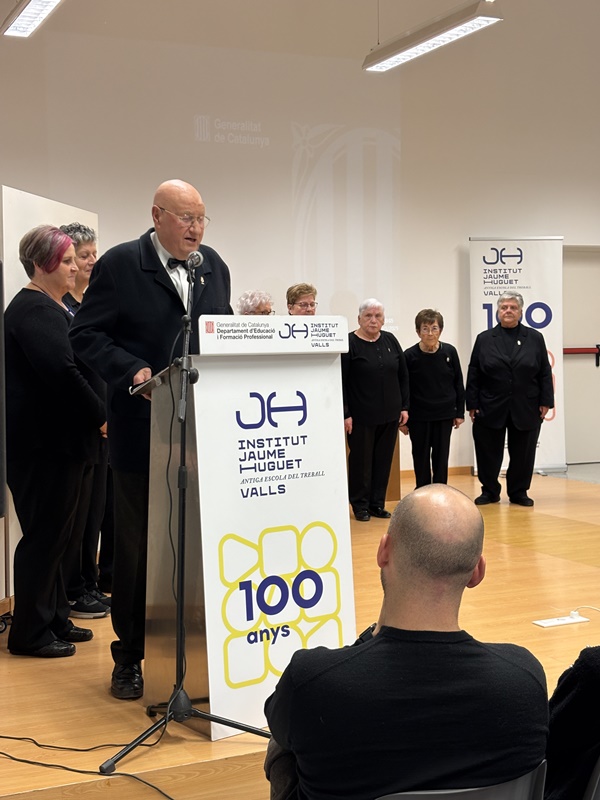Després va actuar la Societat Coral Aroma Vallenca, en record de l’entitat que va acollir els moments inicials de creació de l’Escola del Treball, i el seu president, Joan Torné, també va rebre un obsequi com a reconeixement d’aquest fet.