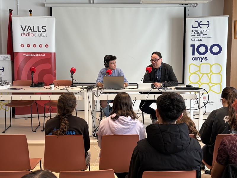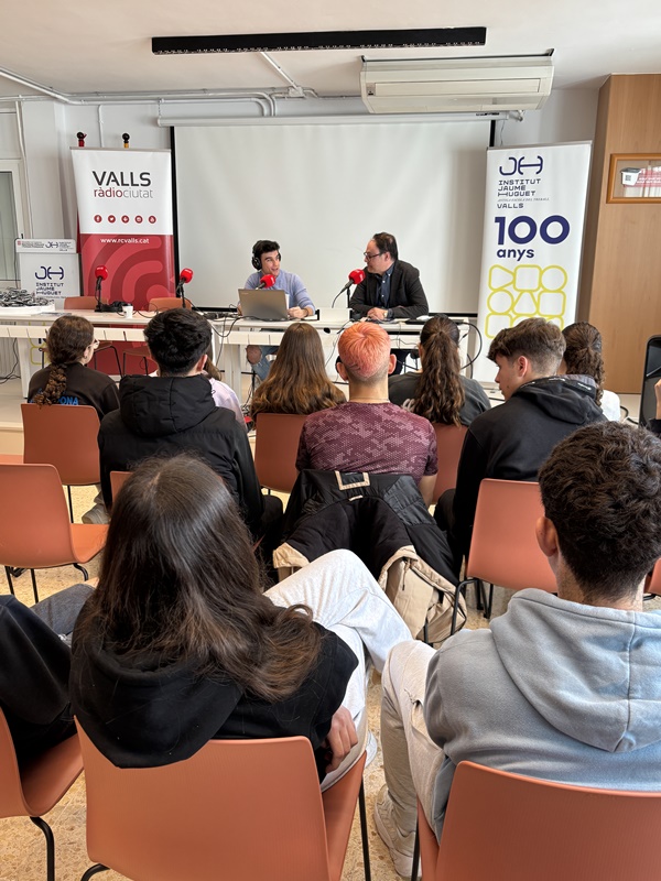 El 13 de febrer és el Dia Mundial de la Ràdio. Per aquest motiu, i com un altre dels actes del Centenari, Ràdio Ciutat de Valls va fer un programa en directe de dos quarts d’11 a les 12 del matí a l’auditori del nostre centre.