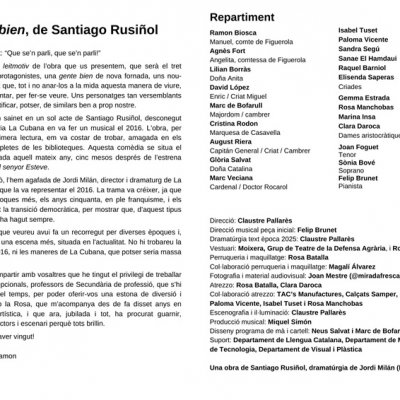 ”Que se’n parli, que se’n parli!”, diuen a Gente bien. I tant que se’n parlarà perquè el grup de docents que, amb motiu del centenari de l’Institut, es van proposar representar una obra de teatre, han fet una enorme feina! I se’n parlarà!