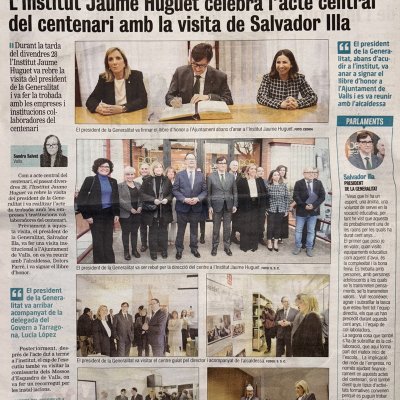 L’acte fou conduït pel professor i membre de la comissió del Centenari Antoni Marsal, i comptà amb els discursos del director de l’Institut, Josep Maria Soler; del president de la Cambra de Comerç de Valls, Josep Maria Rovira; de l’alcaldessa de Valls, Dolors Farré, i del president de la Generalitat, Salvador Illa.