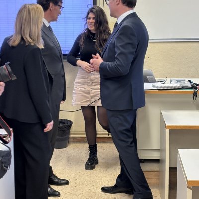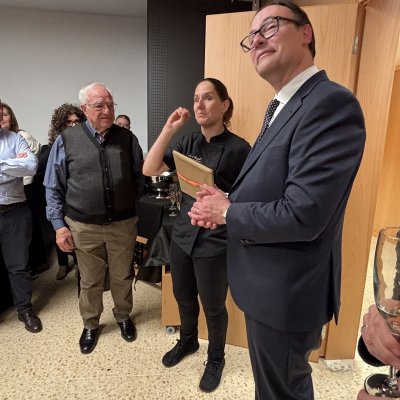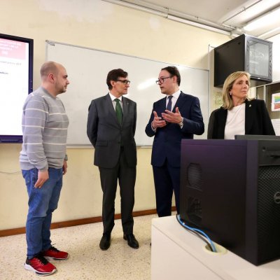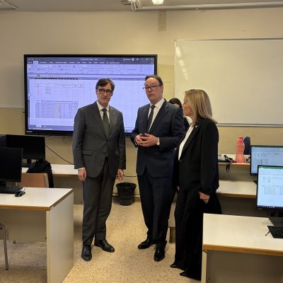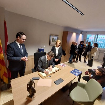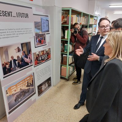 A més de visitar les noves instal·lacions del centre i algunes aules amb alumnes de CFGS, el president va signar en el llibre d’honor. Al despatx del director, a més, se li van lliurar els mateixos obsequis que a les empreses i institucions: l’auca del centenari, l’ampolla de vermut del centenari, material informatiu de tots els ensenyaments del centre, un lanyard, el programa d’actes. Com a avançament editorial també es va lliurar la publicació sobre el Polígon Industrial que parteix de la refosa de tres treballs de recerca del curs passat i de la col·laboració de la Fundació Anespro, editada sota el guiatge del departament d'Humanitats; la presentació oficial d'aquest dossier tindrà lloc el divendres 16 de maig. Finalment, Jordi Tuset, autor del llibre del centenari, lliurà al president un exemplar dedicat de l’obra.