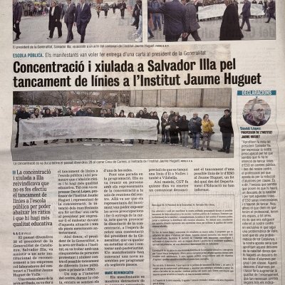 Abans de començar l’acte, el president va voler rebre dos representants dels manifestants que, a les portes del centre, protestaven en contra del tancament de línies a l’ensenyament públic, els quals li van lliurar la carta amb les seves reivindicacions.