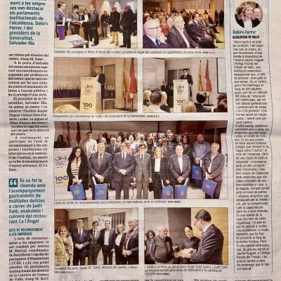 El divendres 28 de febrer es va fer a l’auditori del centre l’acte de reconeixement a les empreses i institucions col·laboradores del Centenari, que va ser presidit pel M. Hble. Sr. Salvador Illa i Roca, president de la Generalitat de Catalunya.