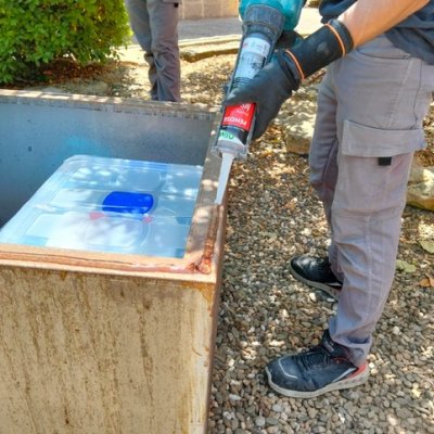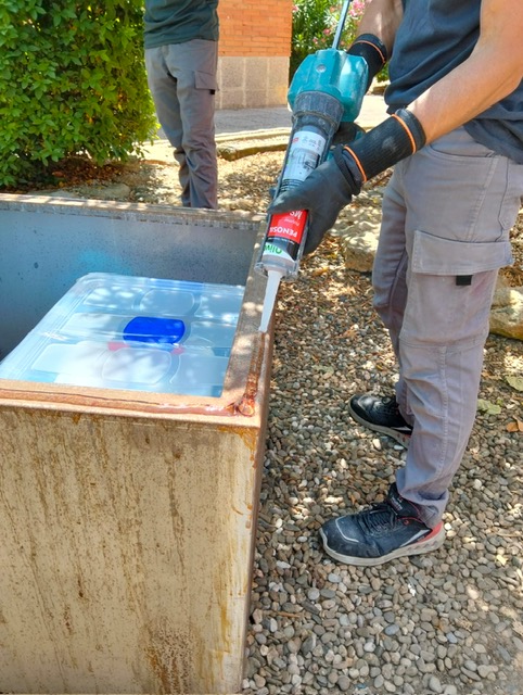 La càpsula, que està situada al jardí del davant del centre, és d'un acer especial que, quan estigui rovellat, es pot esmaltar i dura per sempre.
