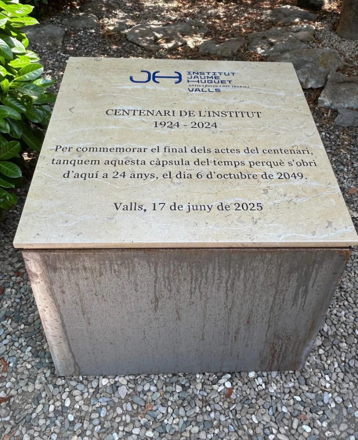 Aquesta càpsula del temps, amb tot el seu contingut, és un testimoniatge del nostre compromís amb el futur. Quan s’obri, a partir del 6 d'octubre de 2049, esperem que l’Institut Jaume Huguet·Antiga Escola del Treball segueixi sent un far de coneixement, creativitat i valors. I que els qui ens trobin en aquell moment puguin veure que, malgrat els canvis, la nostra essència es manté intacta.
