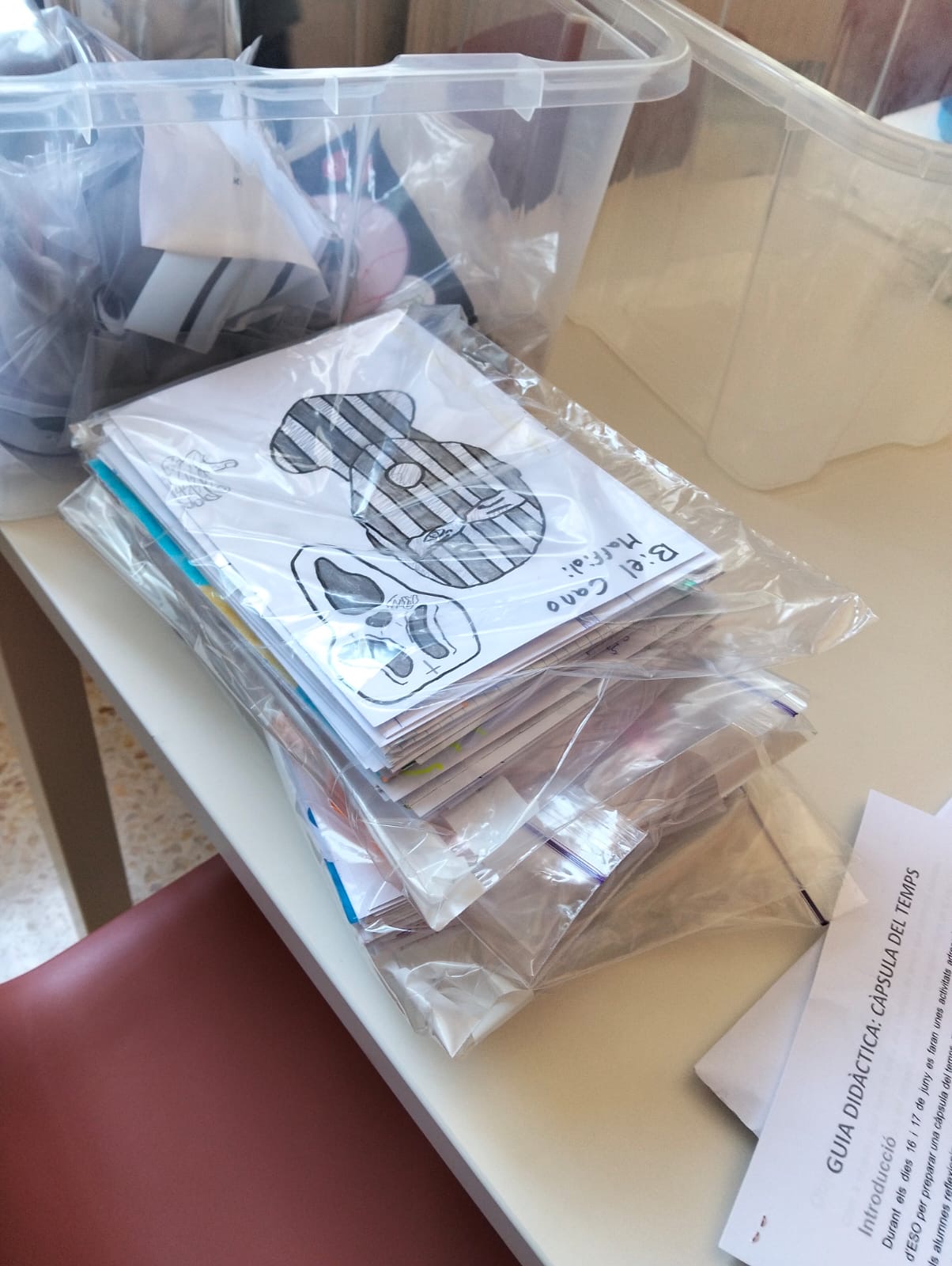 El 16 i 17 de juny, tots els grups d’ESO van estar treballant en el darrer projecte del curs i del centenari: van preparar material per tancar-lo dins la càpsula del temps que veieu a les imatges, i que es preveu que pugui ser oberta el 6 d’octubre de 2049, quan l’Institut faci 125 anys.
