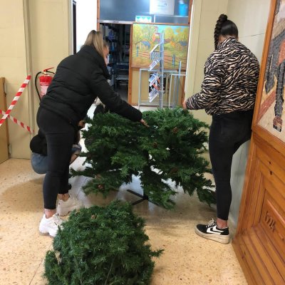 Com cada any, l’alumnat del CFGM d'Activitats Comercials ha decorat l'Institut amb motius nadalencs. Ahir, els alumnes de 1r del mòdul Dinamització del punt de venda es van dedicar a fer-ho durant el matí. Primer van confeccionar el material a l'aula-taller i després ho van muntar a la zona de l’entrada principal de l’edifici central.