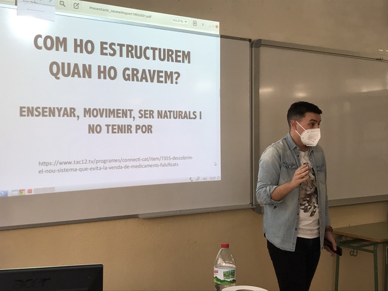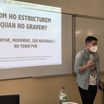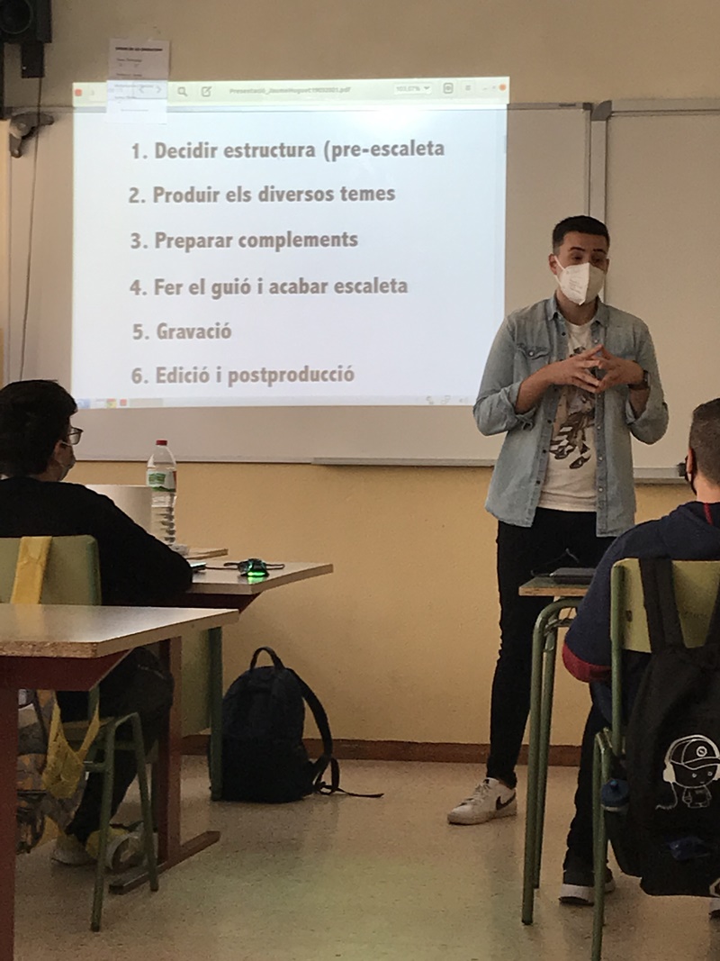 El Jordi és presentador de la cadena TAC12 i exalumne del nostre institut i, el dia 19 de març, va explicar als alumnes quins són els elements necessaris per fer un bon reportatge. Van poder practicar el contingut de la xerrada-taller fent una gravació d'un vídeo d’uns 15 segons.