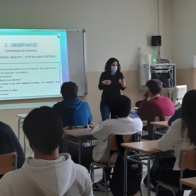 El 8 d’abril, l’alumnat de 1r de Batxillerat va assistir a la xerrada de la Cristina Salmeron sobre recursos per a la part pràctica del Treball de recerca, que tanca totes les activitats sobre TdR de 1r BAT. El dia 8 de març ja havien tingut la xerrada del professor Josep Lluís Cañadilla sobre cerques per Internet.