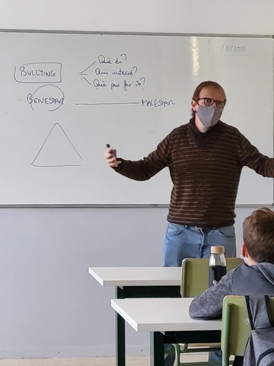 Carles Porrini Cubells va fer-los el taller amb l’objectiu que coneguessin els conceptes claus de l’assetjament escolar i prenguessin consciència dels diferents agents que hi intervenen. També els va donar habilitats personals i socioemocionals perquè aprenguessin a gestionar les emocions i el benestar. Finalment, els donà pautes d’actuació per prevenir, detectar i actuar davant de situacions d’assetjament.