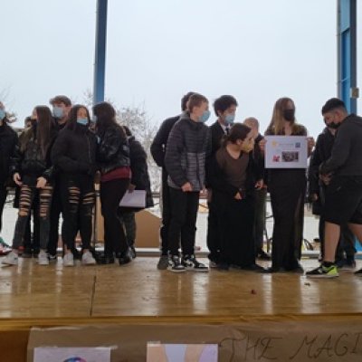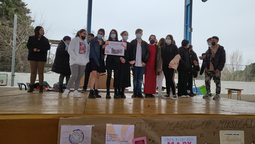 Aquest matí després del pati s’ha fet la la primera edició de Got Talent Especial Musicals, que és la cloenda del Treball per Projectes sobre els musicals que han dut a terme els alumnes de 3r d’ESO durant les darreres setmanes. Dalt de l’escenari i davant dels companys d’ESO, han demostrat les seves habilitats artístiques i el domini de la llengua anglesa. Finalment, a partir de la valoració dels espectadors, s’ha triat el grup guanyador, que ha estat 3r D amb la interpretació de la cançó “Friend like me” d’ALADDIN