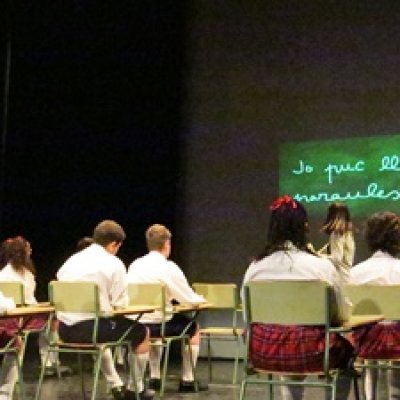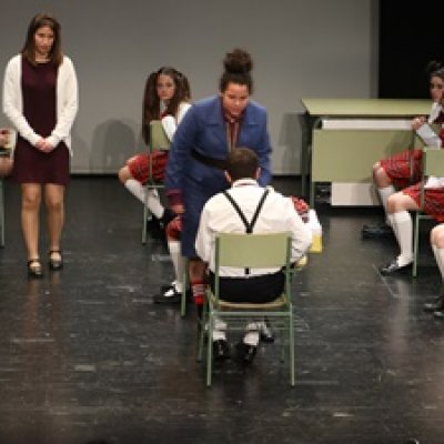 El van representar alumnes de 4t d’ESO, bàsicament, amb la col·laboració dels de l’optativa de Coral de 3r i d’un grup de professors. A més a més, enyorats una mica d’aquella Matilda que no va poder ser fa dos anys, es va convidar l’alumna que havia de ser la protagonista llavors, Aina Morató, a cantar una de les peces de l’obra.
