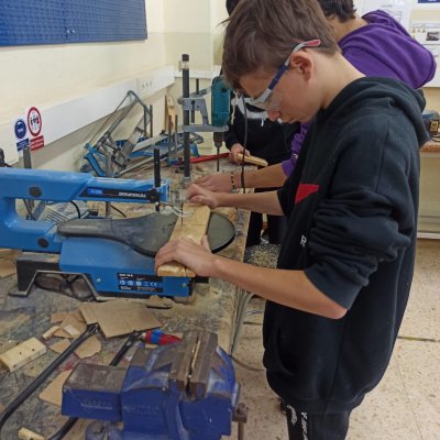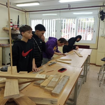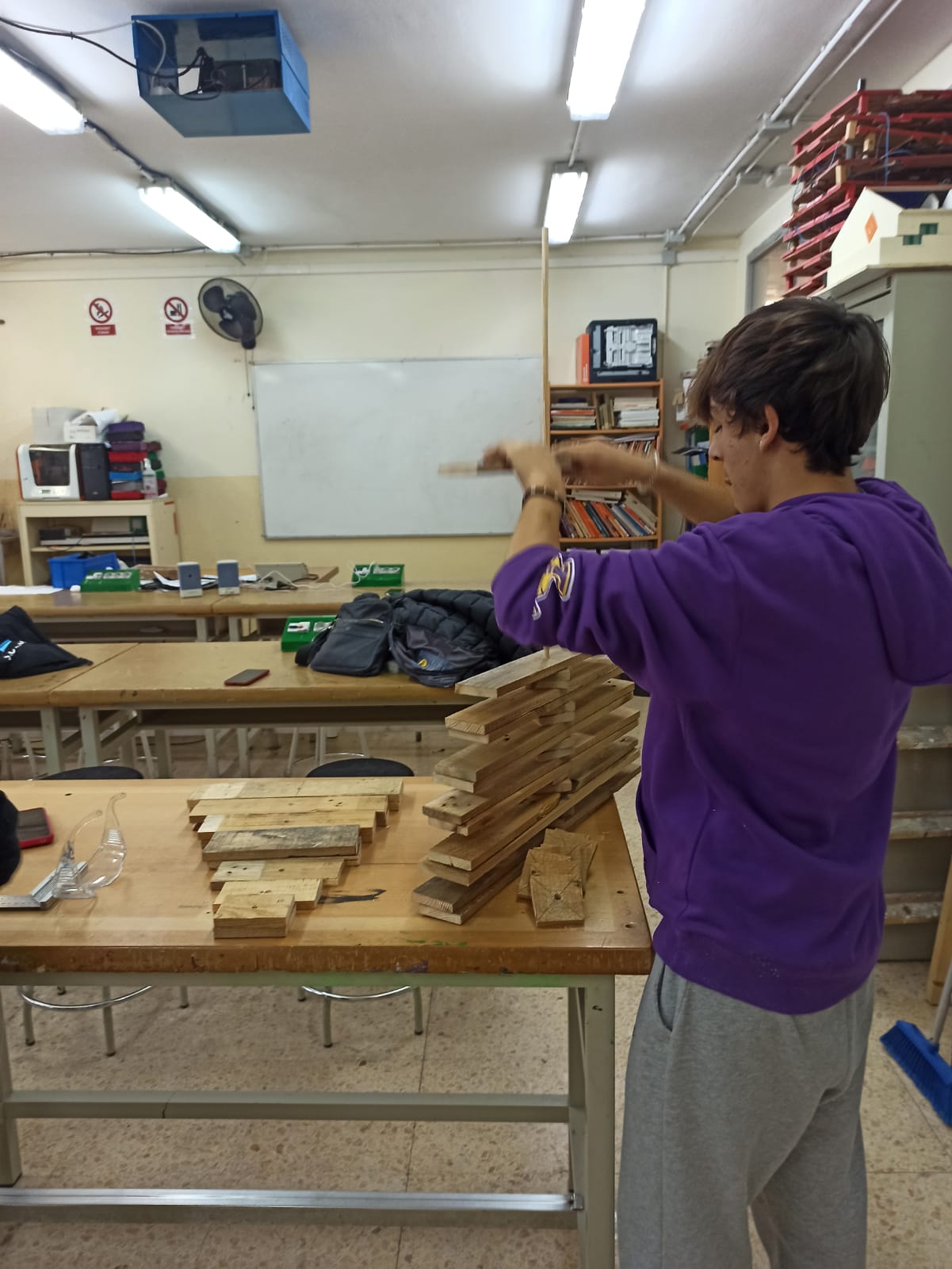 Els alumnes de 1r d’FP Bàsica han transformat un palet de fusta que tenia com a destí la deixalleria en un preciós arbre de Nadal que servirà d'expositor per la paradeta de decoracions nadalenques que muntaran properament.