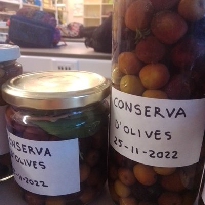 L'alumnat de l'optativa de 3r Descoberta de l'entorn, fa unes setmanes va fer conserva amb les olives de l'olivera del jardí de l'Institut.