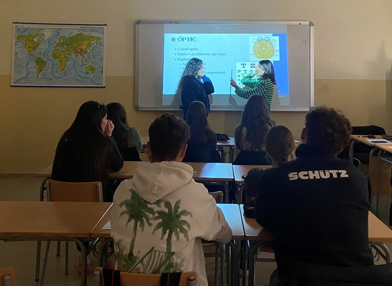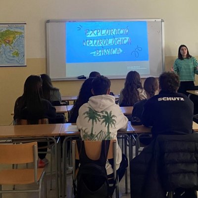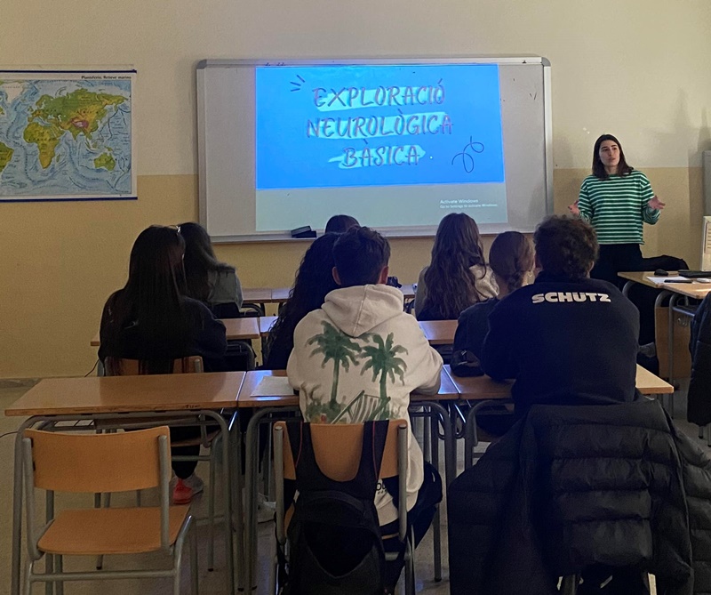 El 2 de març, a la optativa de Biomedicina de 1r de Batxillerat, l’estudiant de 5è de Medicina Berta Corrales va fer un taller teoricopràctic sobre com es duu a terme l’exploració neurològica dels pacients en un hospital. També va preparar un Kahoot amb contingut mèdic i els alumnes van poder aclarir dubtes sobre el grau de Medicina i la seva professió.