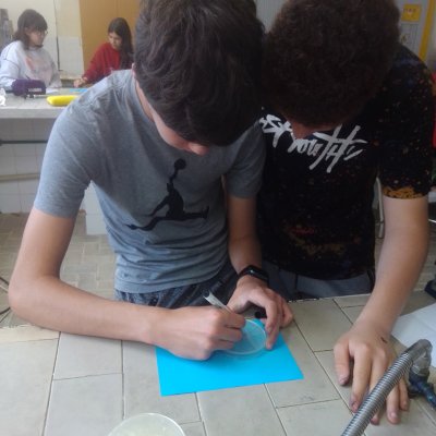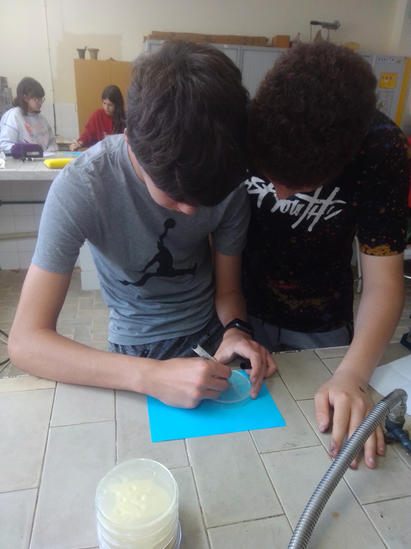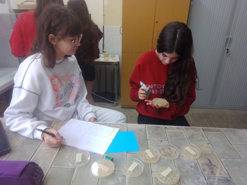 L'alumnat de l'optativa de 2n d'ESO "El món microscòpic" està investigant quins són els espais amb més presència de microorganismes de l'Institut. Per a fer-ho, cada grup ha dissenyat el seu experiment, utilitzant els diferents passos del mètode científic i les tècniques de cultiu que prèviament han treballat al laboratori. Les properes setmanes treballaran amb els resultats obtinguts i començaran el següent experiment: cultivaran tres soques de diferents bacteris per tal de comprovar l'efectivitat de diferents remeis naturals.